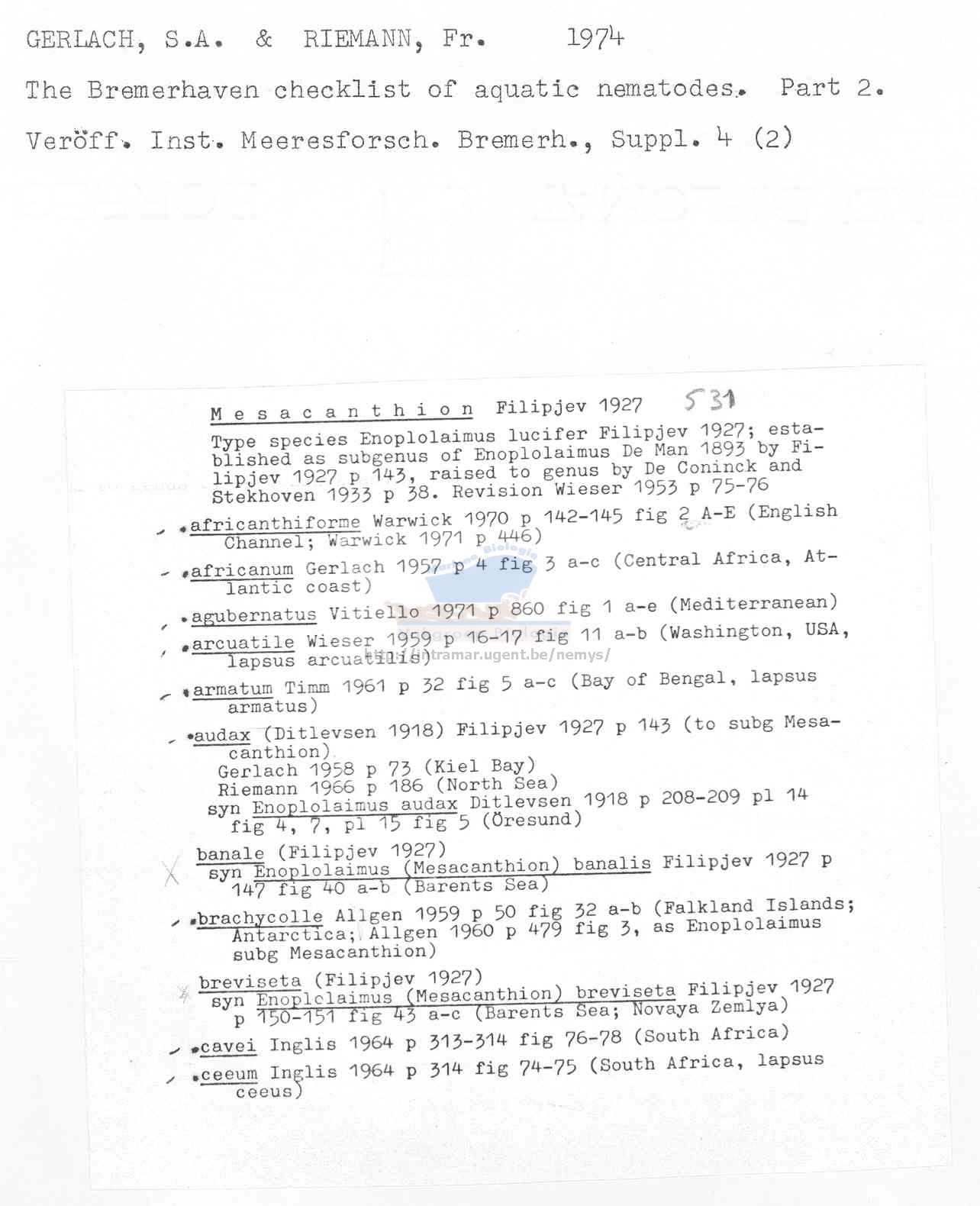 Nematode file-library of the Marine Biology Section (Ghent University, Belgium)