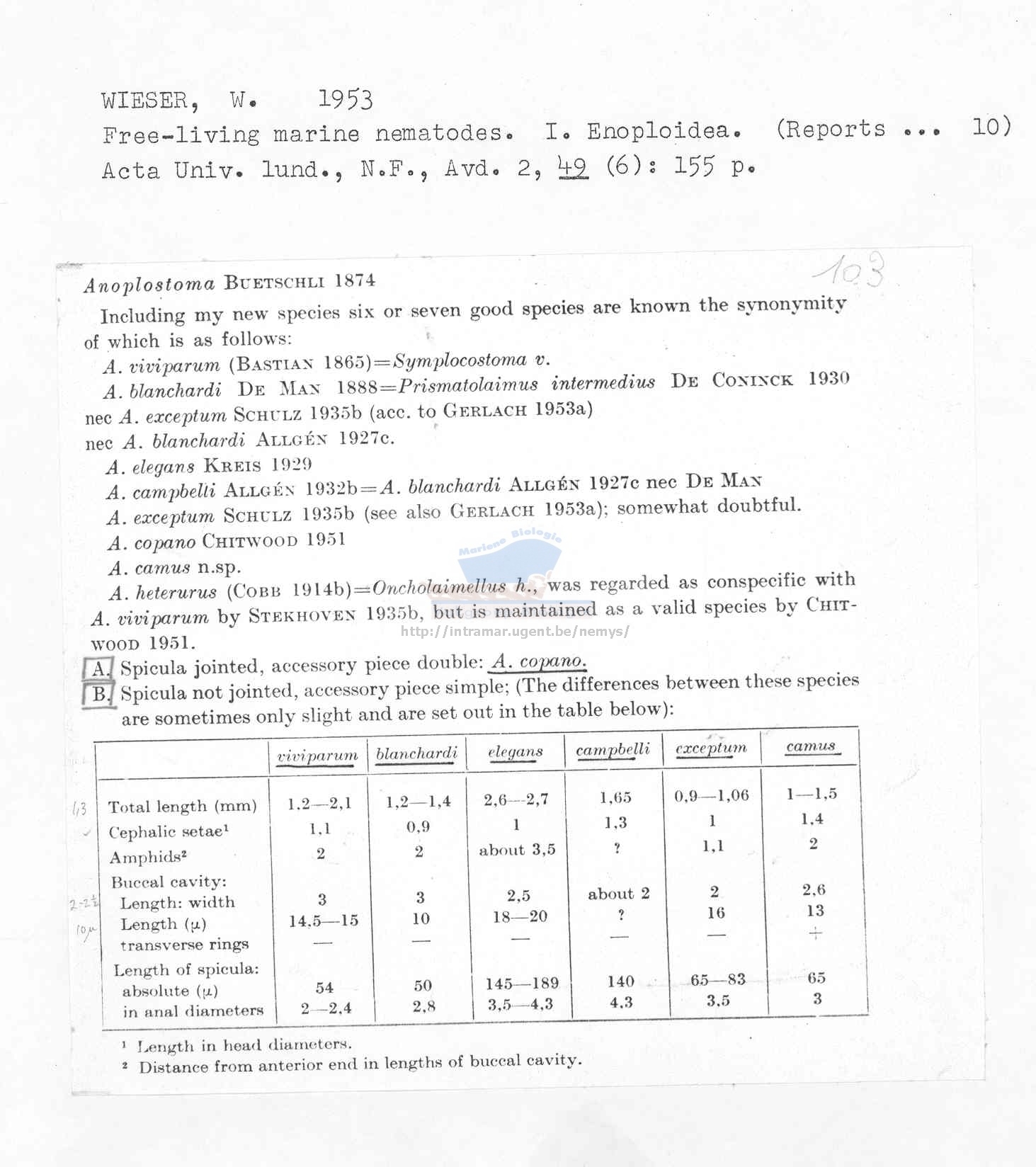 Nematode file-library of the Marine Biology Section (Ghent University, Belgium)