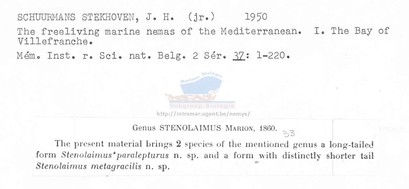 Nematode file-library of the Marine Biology Section (Ghent University, Belgium)