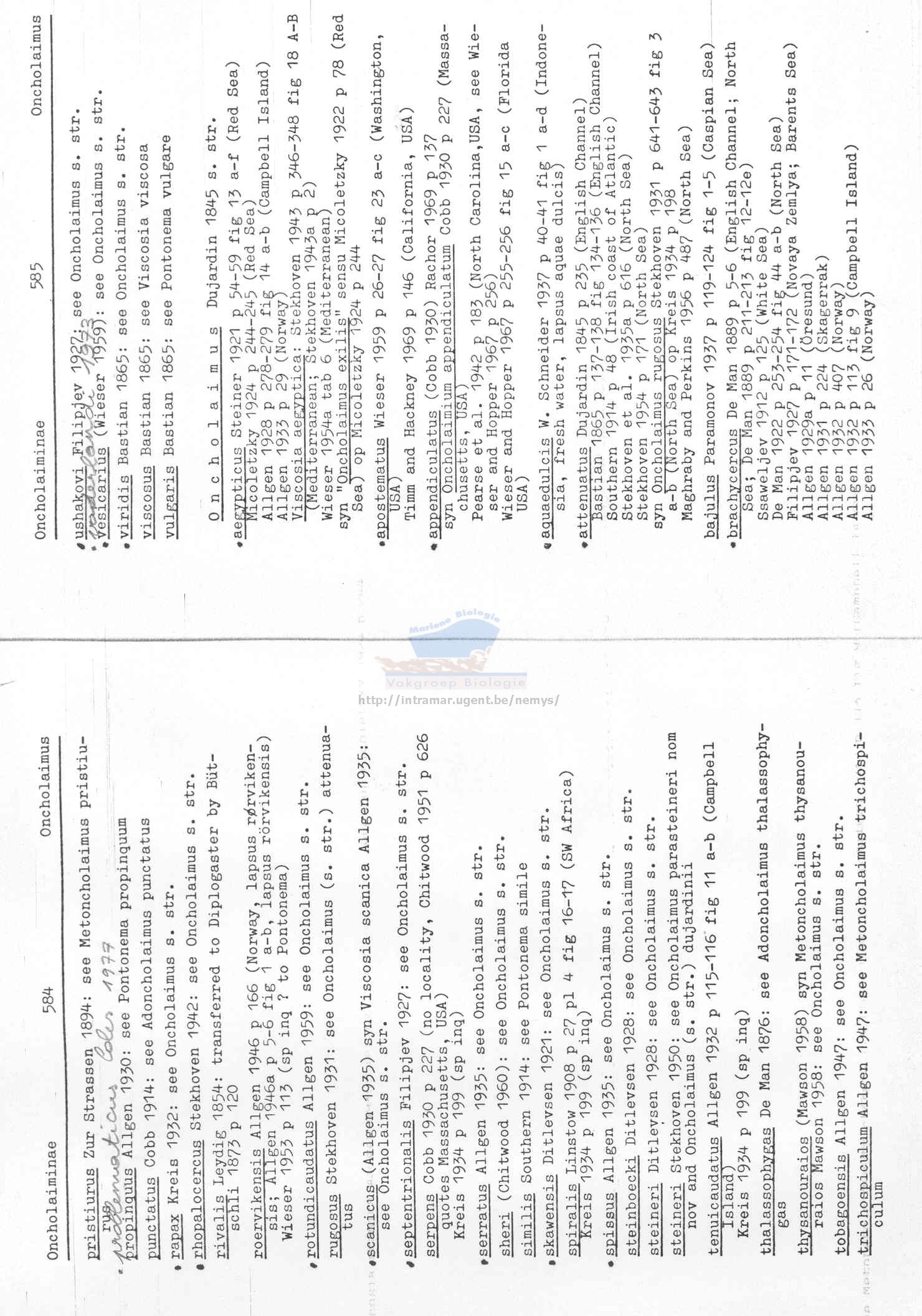 Nematode file-library of the Marine Biology Section (Ghent University, Belgium)