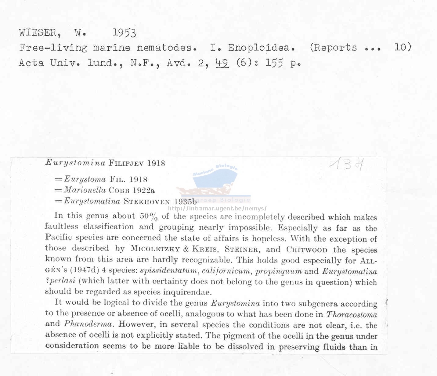 Nematode file-library of the Marine Biology Section (Ghent University, Belgium)