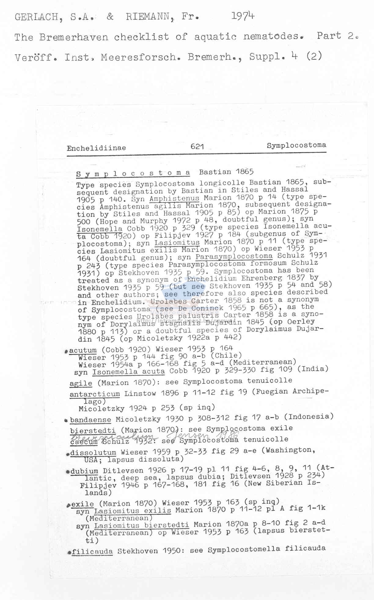 Nematode file-library of the Marine Biology Section (Ghent University, Belgium)