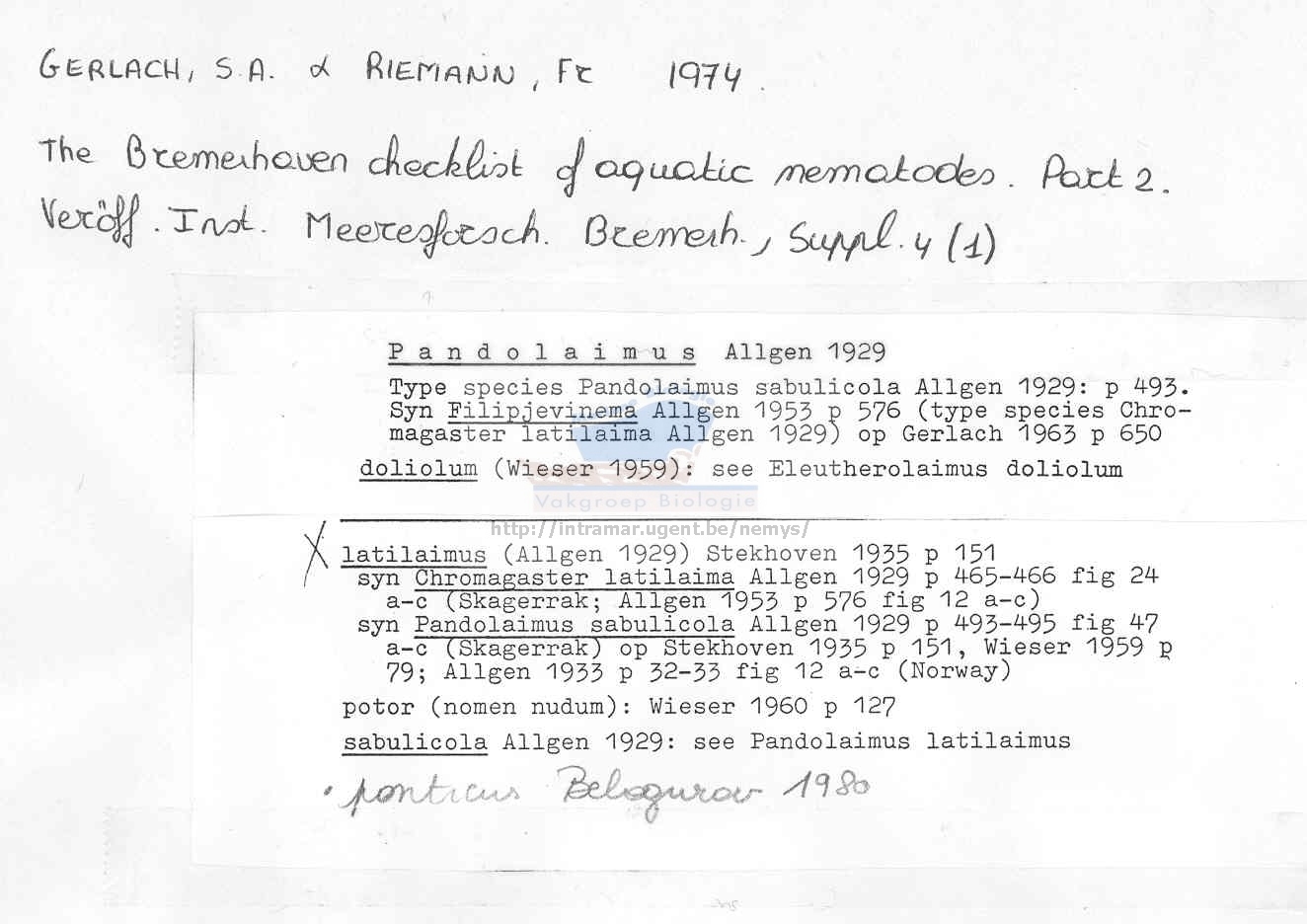 Nematode file-library of the Marine Biology Section (Ghent University, Belgium)