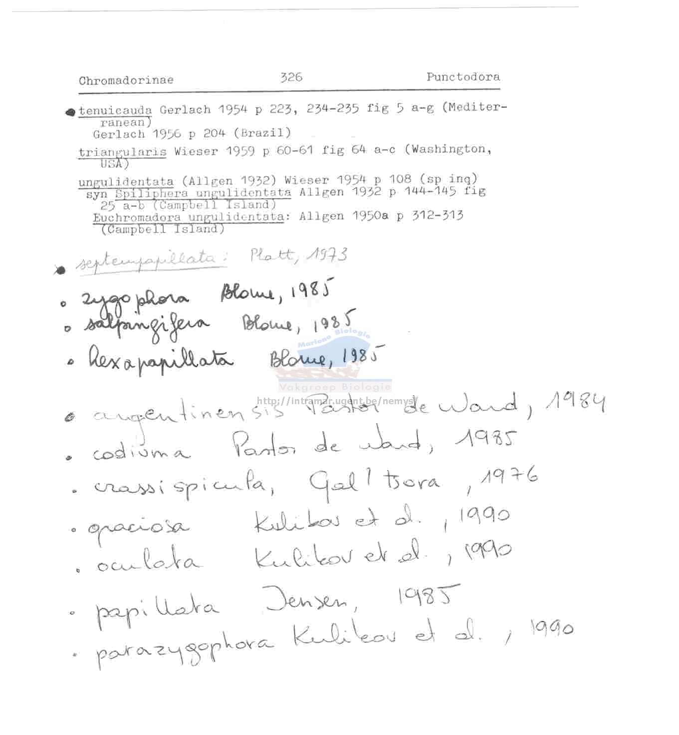 Nematode file-library of the Marine Biology Section (Ghent University, Belgium)