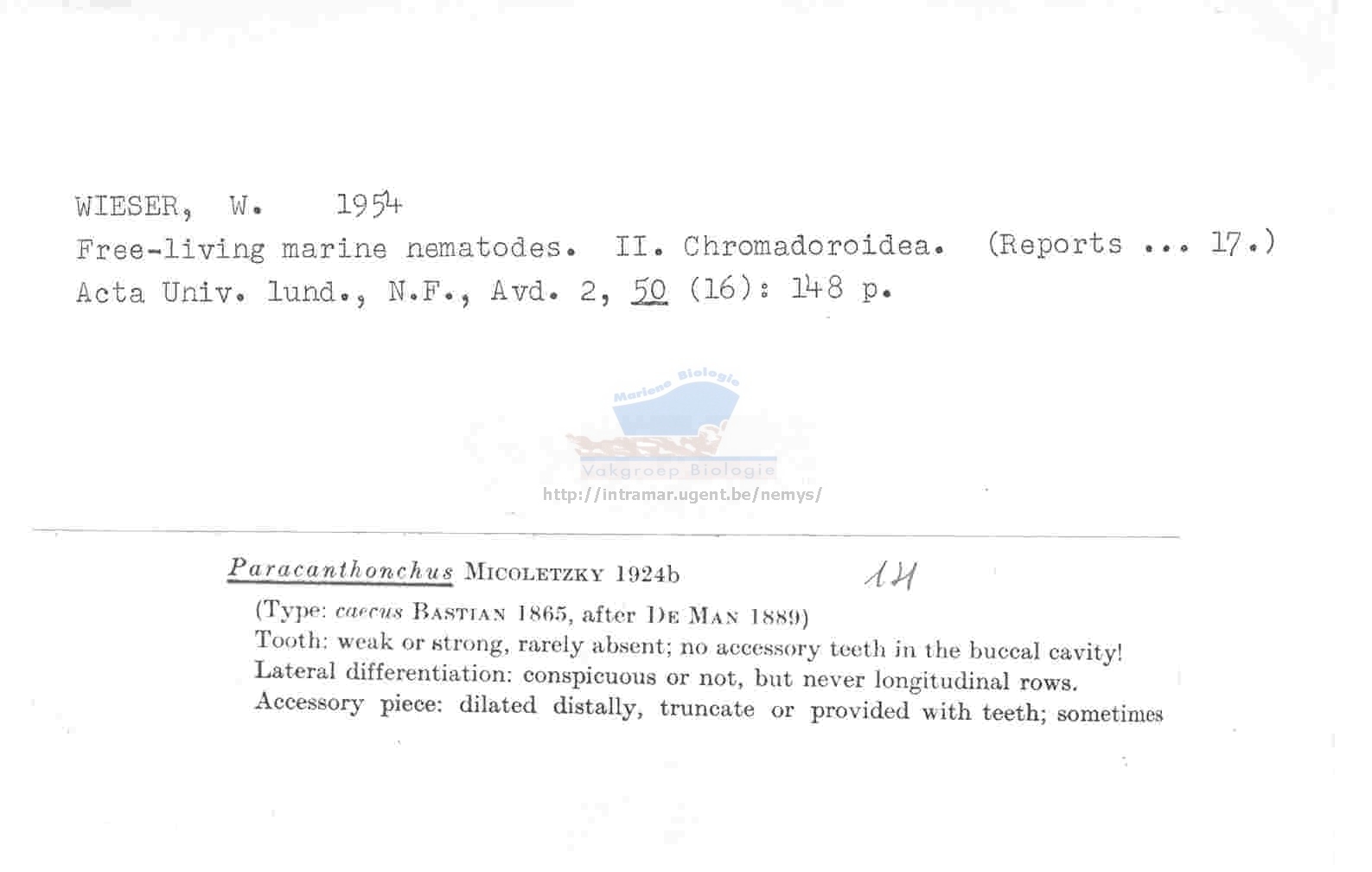 Nematode file-library of the Marine Biology Section (Ghent University, Belgium)