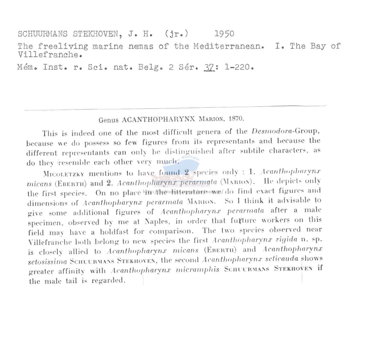 Nematode file-library of the Marine Biology Section (Ghent University, Belgium)