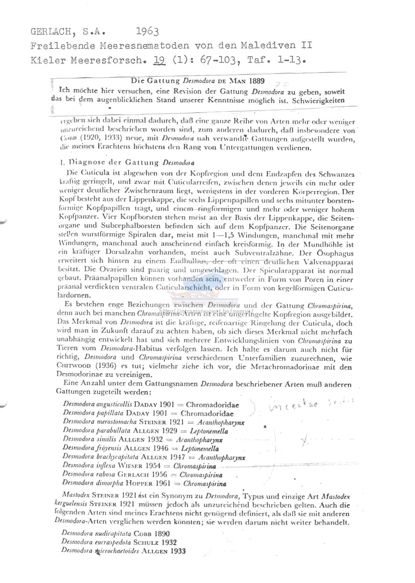 Nematode file-library of the Marine Biology Section (Ghent University, Belgium)
