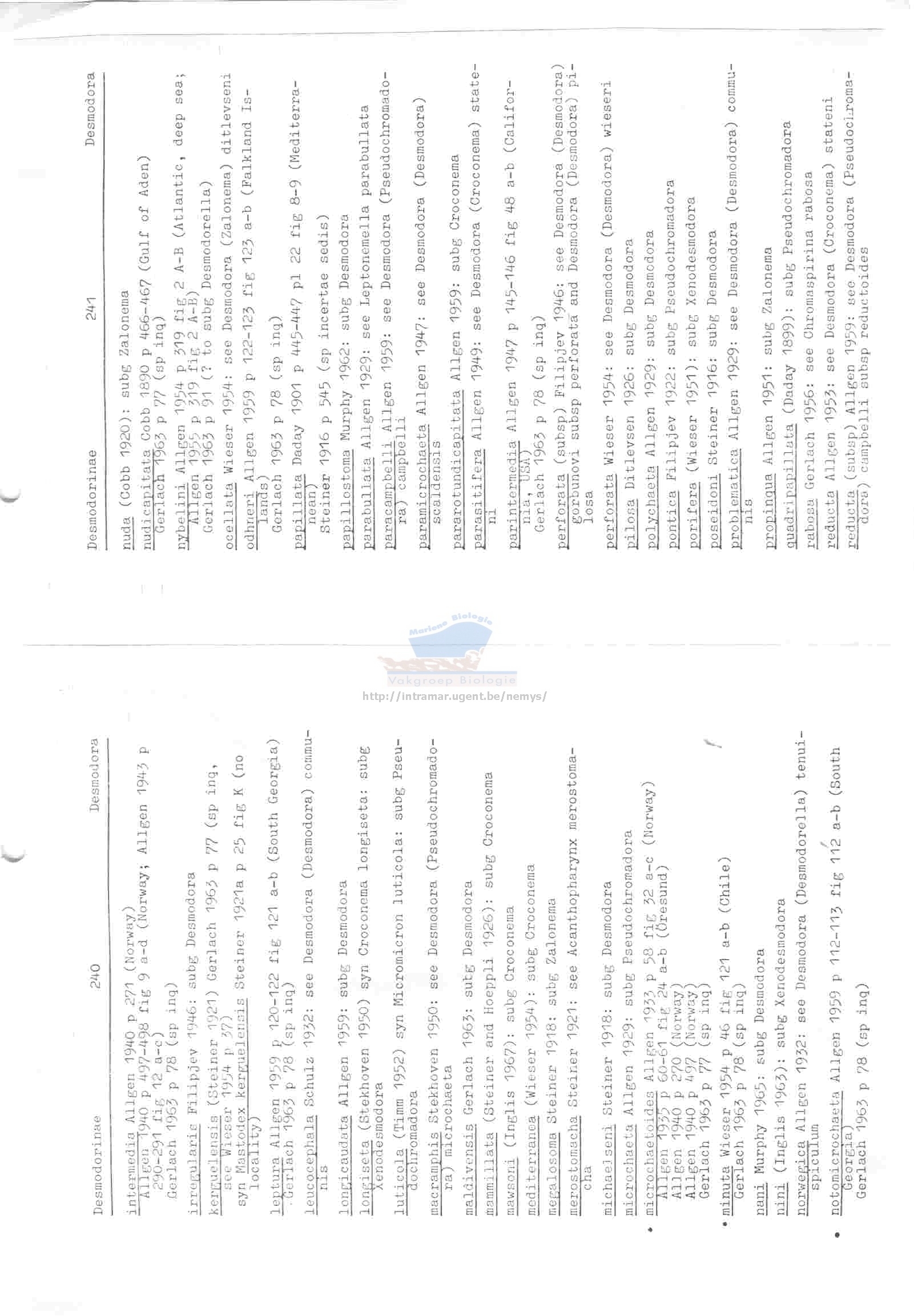 Nematode file-library of the Marine Biology Section (Ghent University, Belgium)