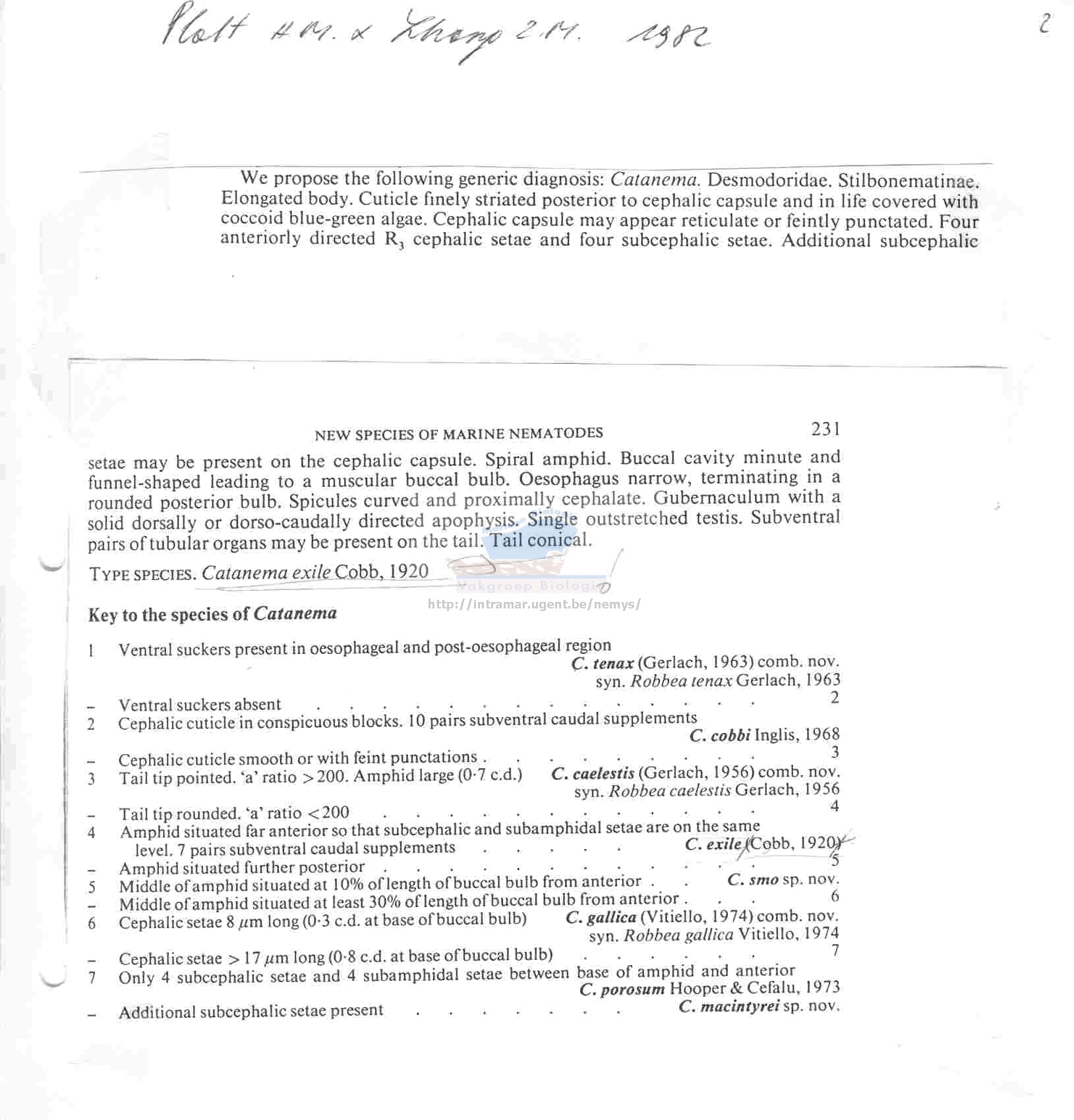 Nematode file-library of the Marine Biology Section (Ghent University, Belgium)