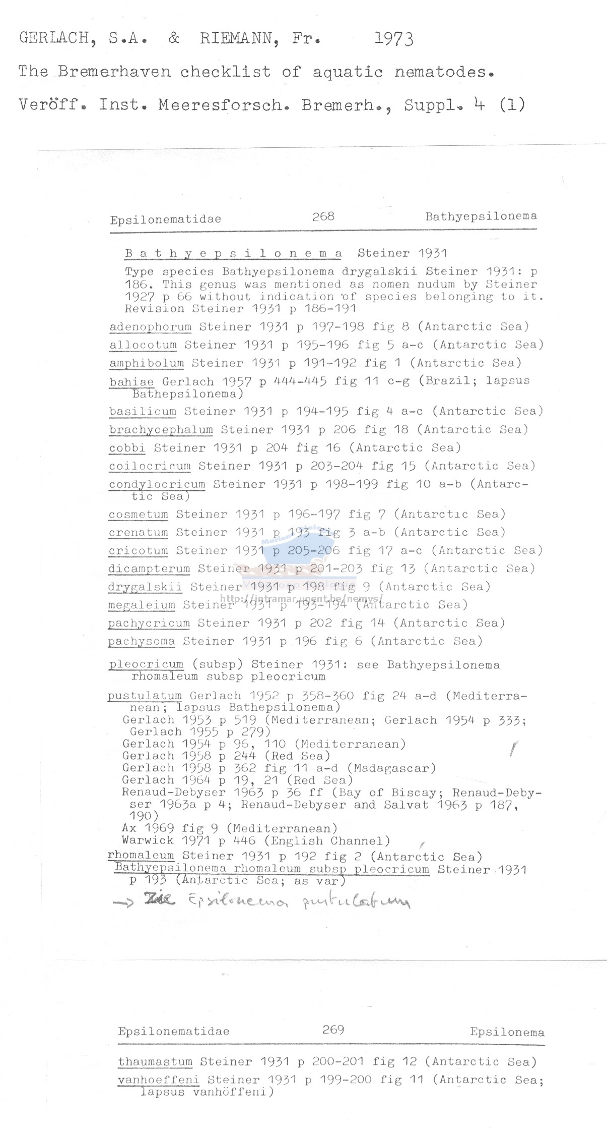 Nematode file-library of the Marine Biology Section (Ghent University, Belgium)