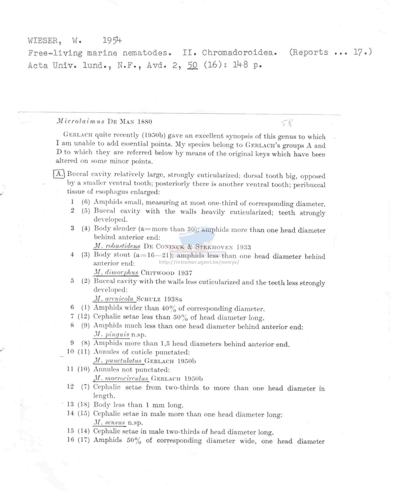 Nematode file-library of the Marine Biology Section (Ghent University, Belgium)