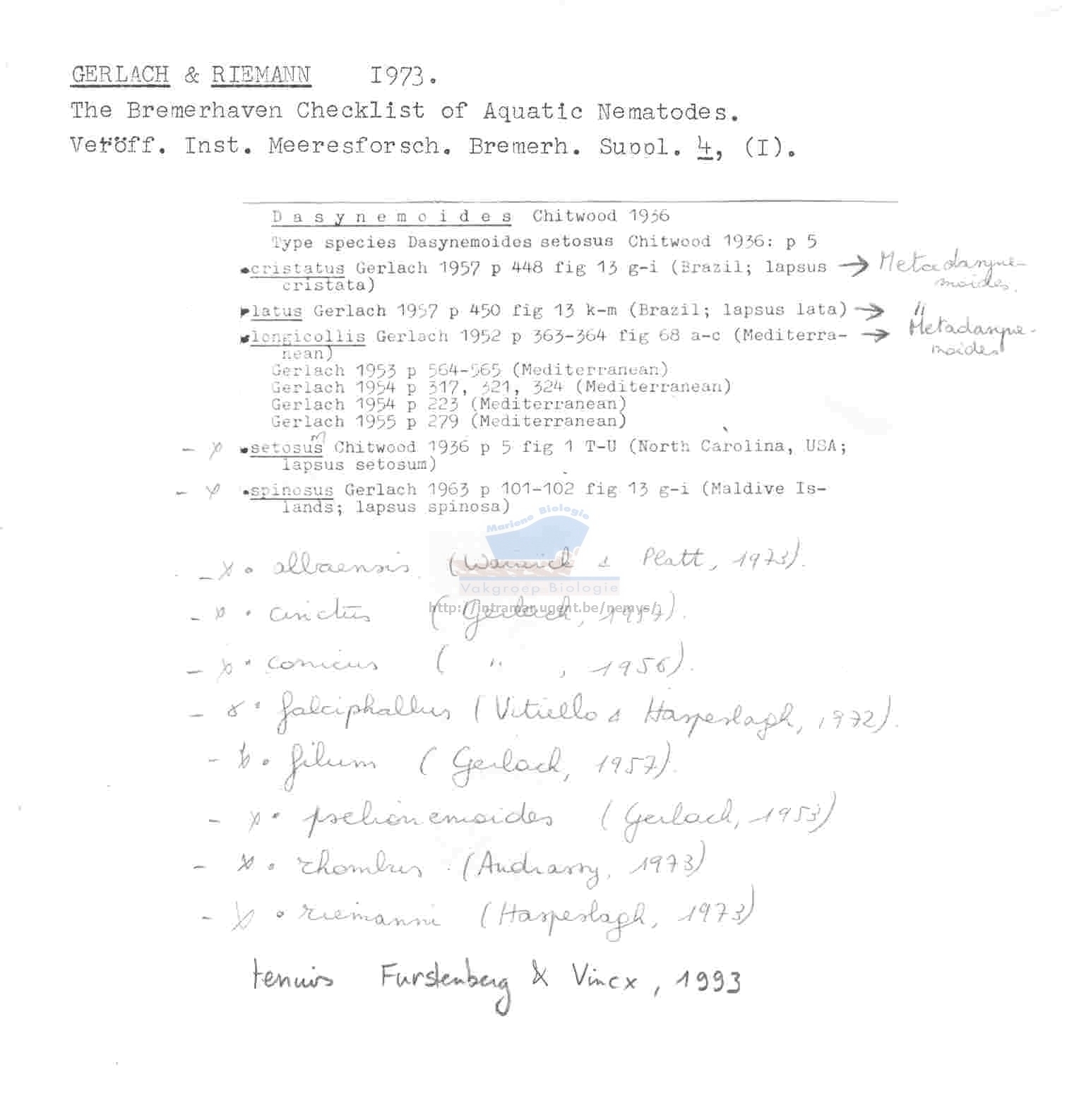 Nematode file-library of the Marine Biology Section (Ghent University, Belgium)