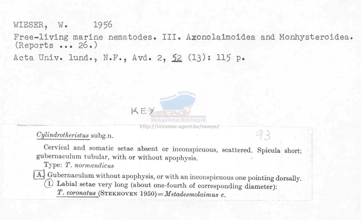 Nematode file-library of the Marine Biology Section (Ghent University, Belgium)