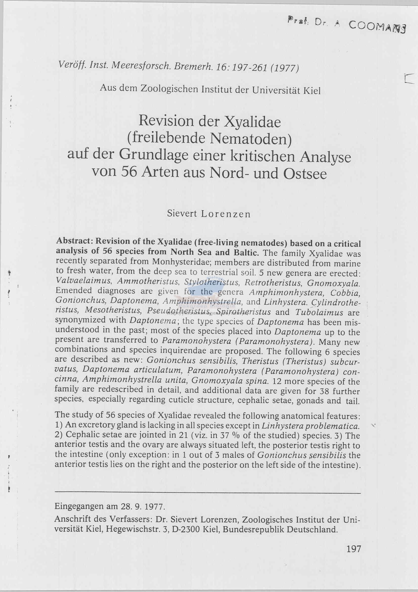 Nematode file-library of the Marine Biology Section (Ghent University, Belgium)