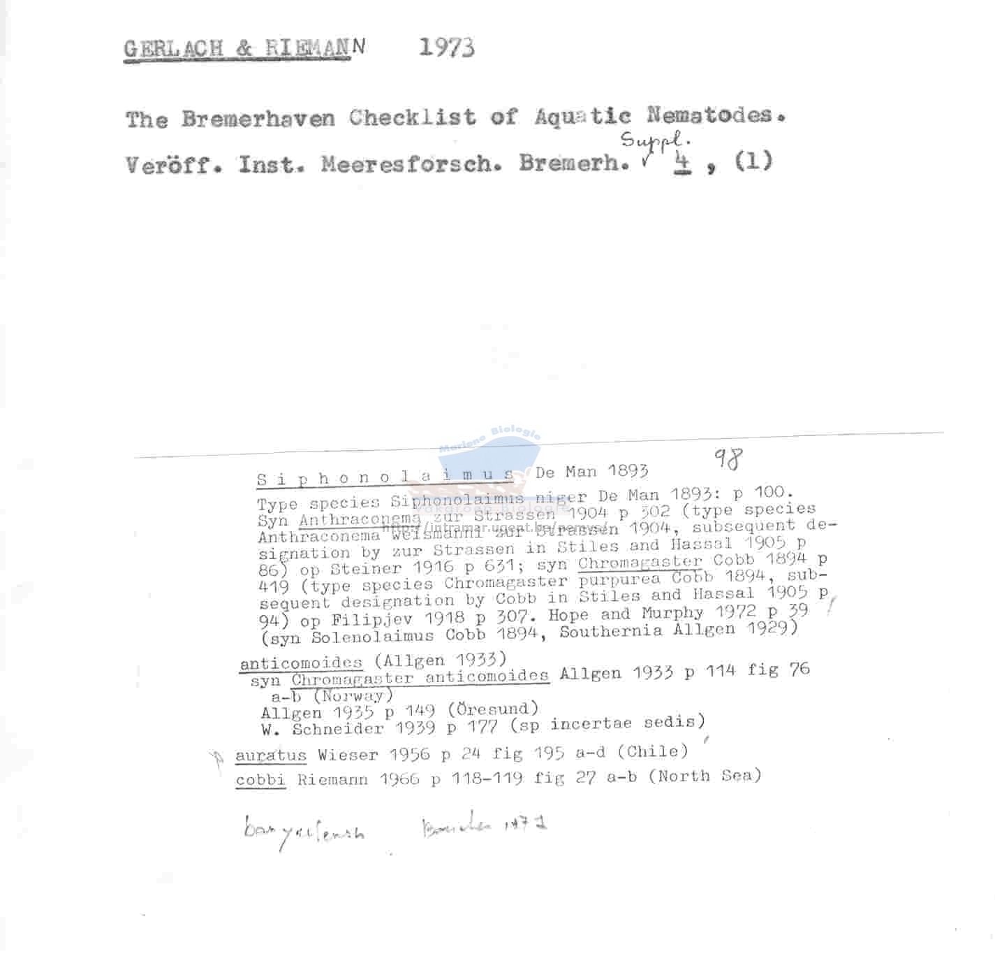 Nematode file-library of the Marine Biology Section (Ghent University, Belgium)