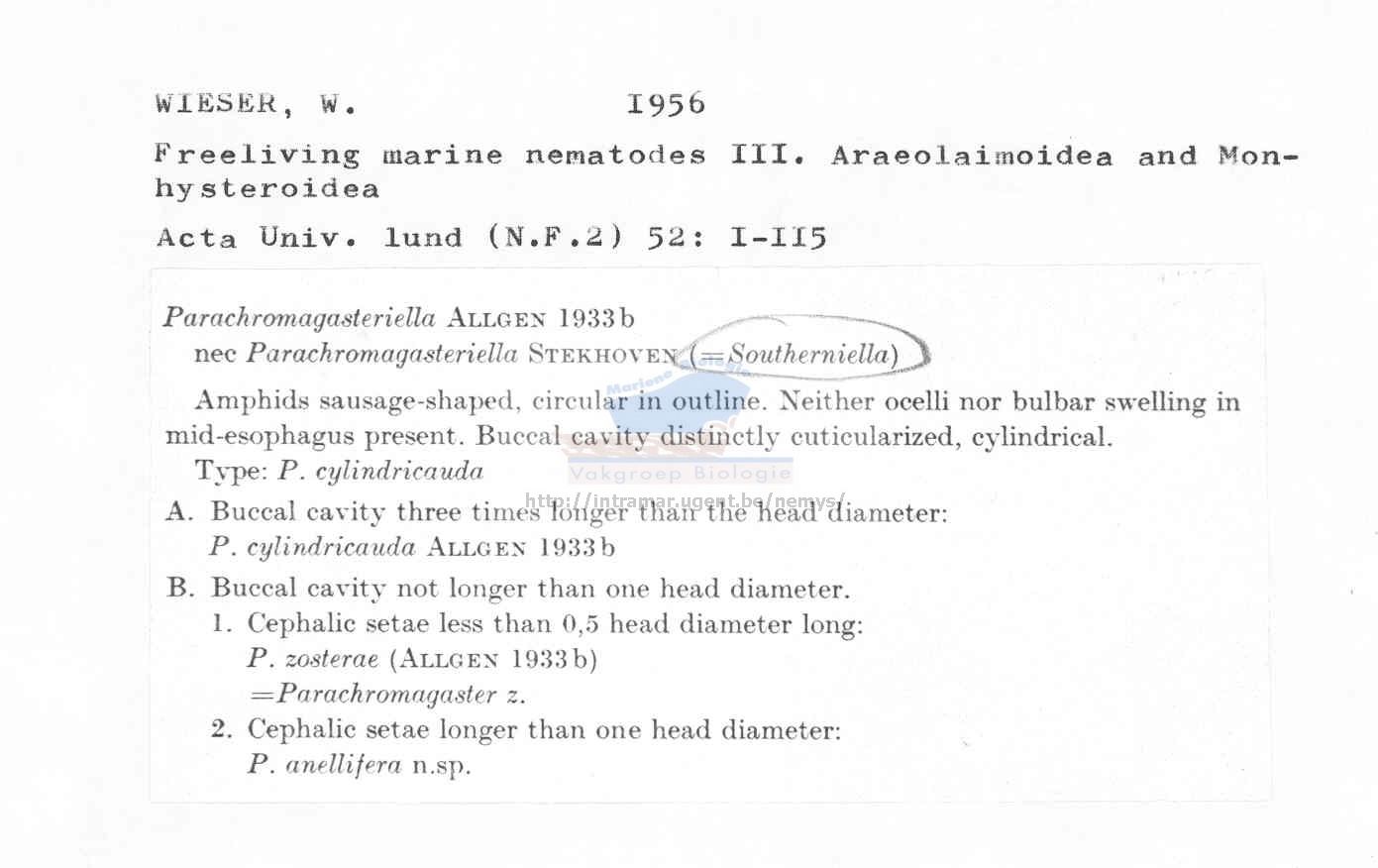 Nematode file-library of the Marine Biology Section (Ghent University, Belgium)