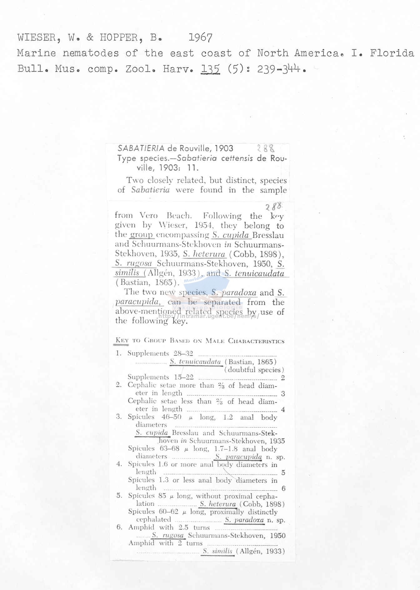 Nematode file-library of the Marine Biology Section (Ghent University, Belgium)