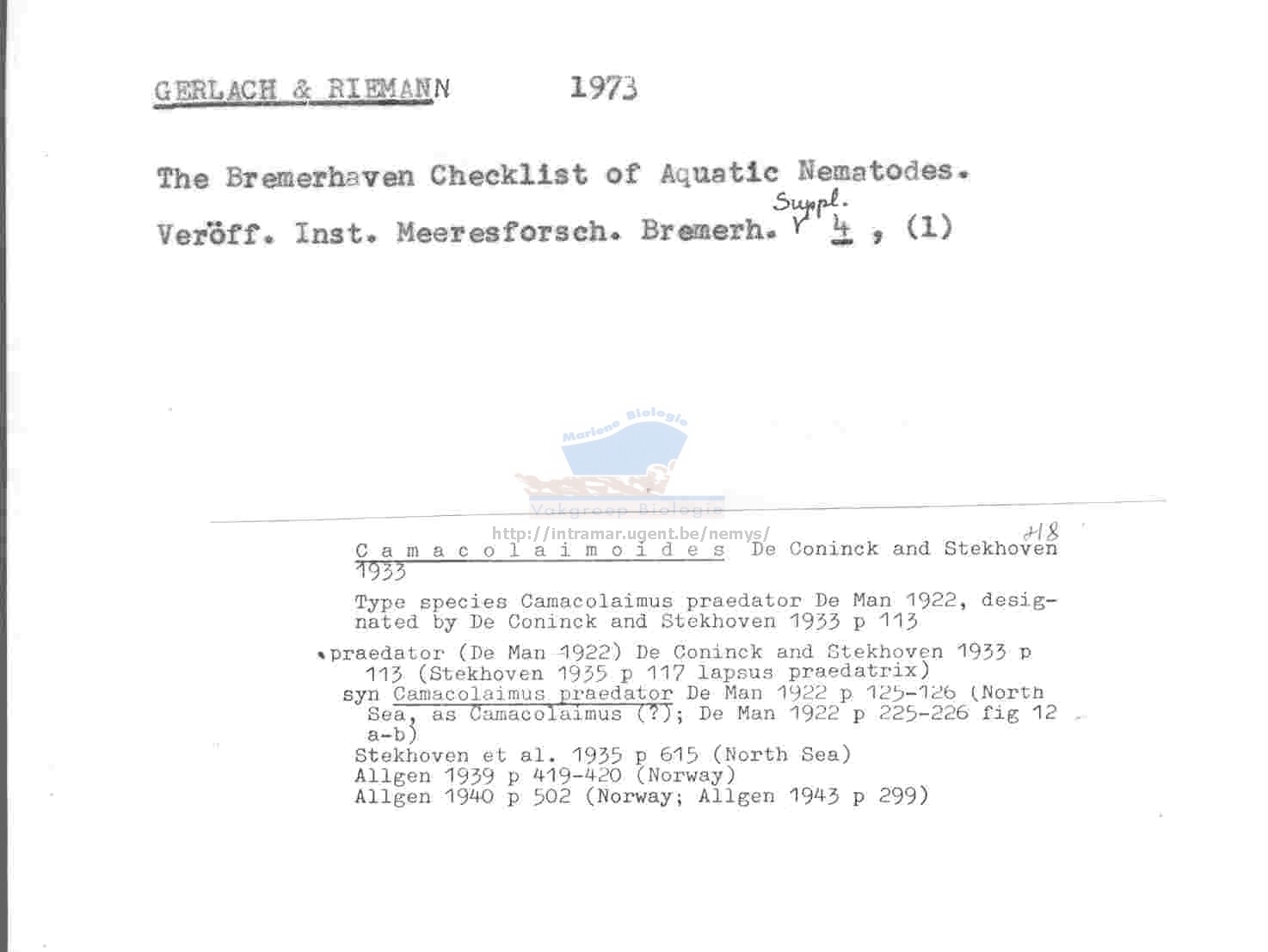 Nematode file-library of the Marine Biology Section (Ghent University, Belgium)