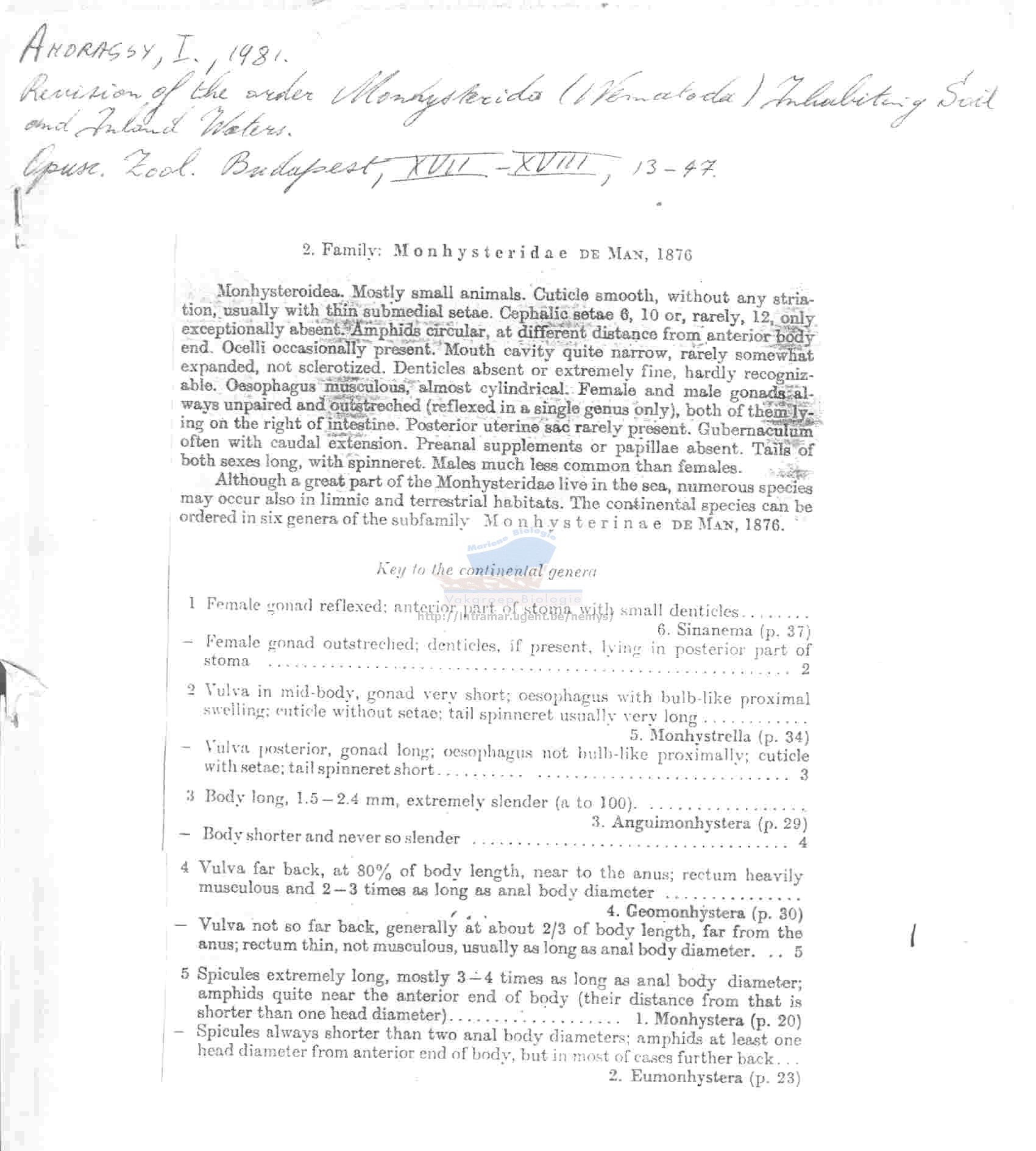 Nematode file-library of the Marine Biology Section (Ghent University, Belgium)