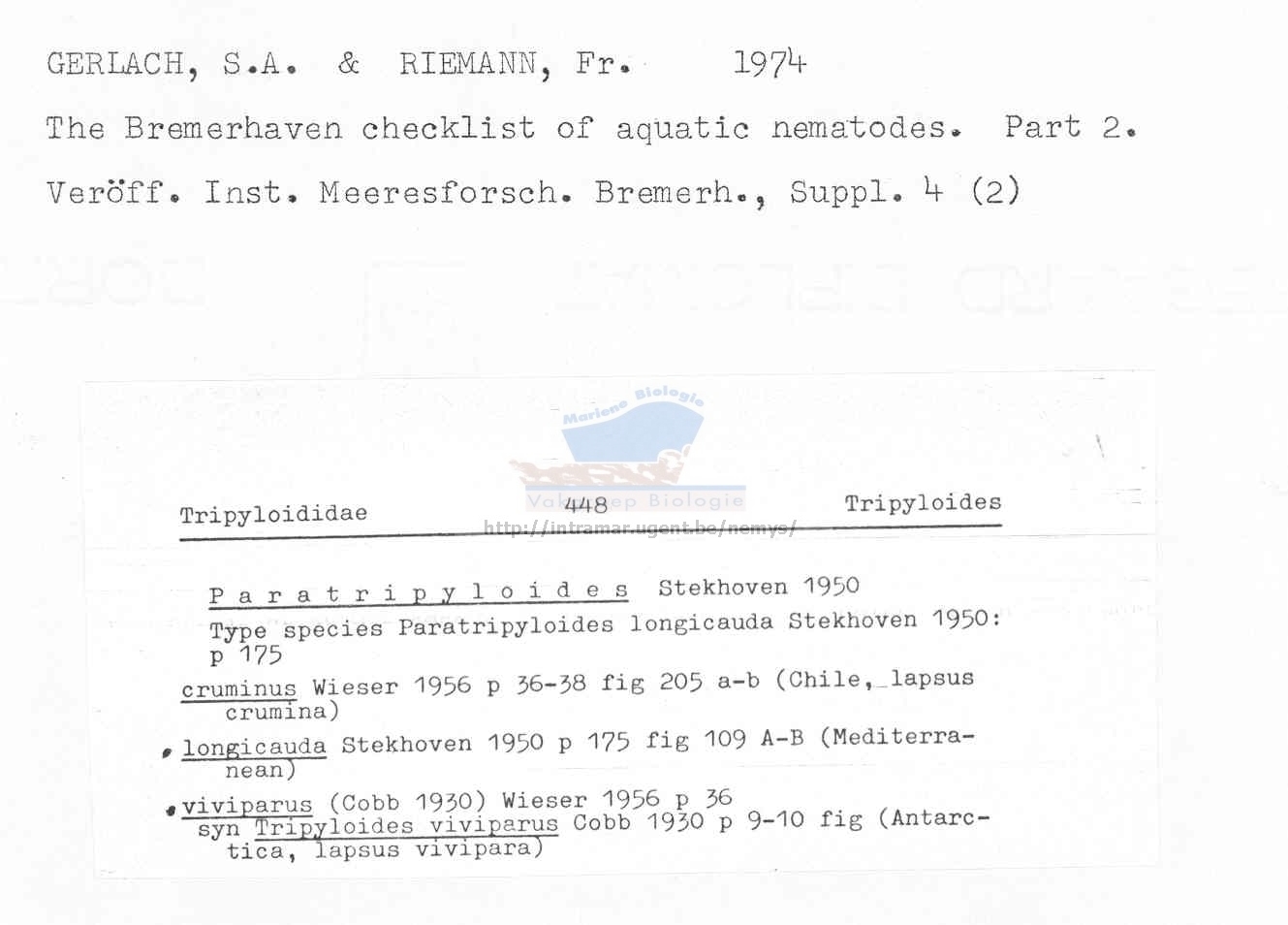 Nematode file-library of the Marine Biology Section (Ghent University, Belgium)