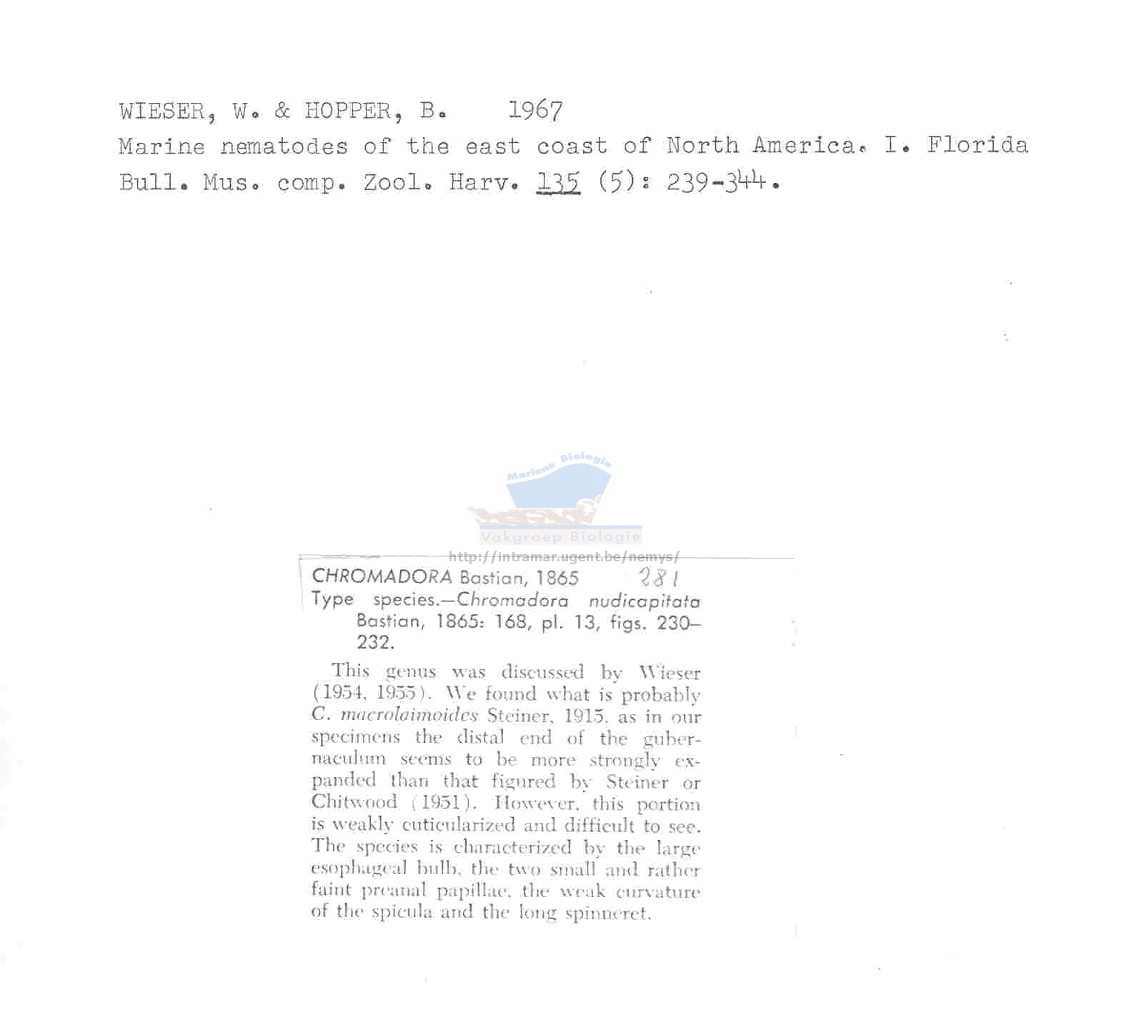Nematode file-library of the Marine Biology Section (Ghent University, Belgium)