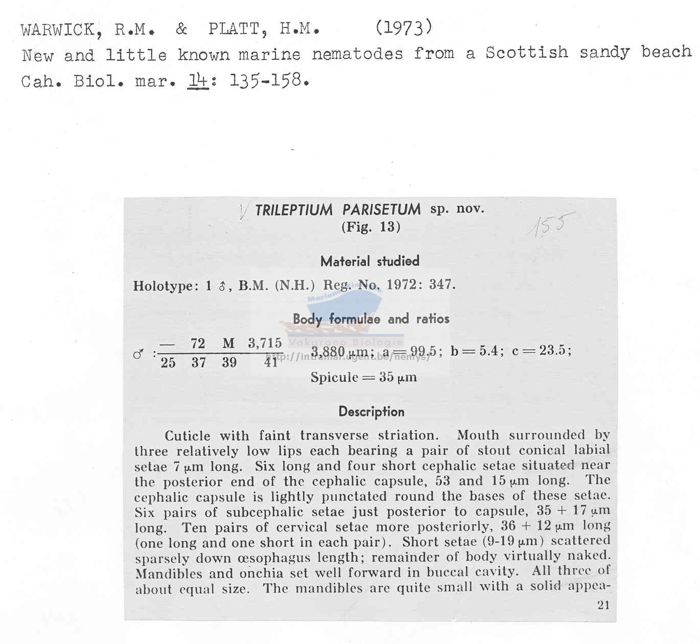 Nematode file-library of the Marine Biology Section (Ghent University, Belgium)