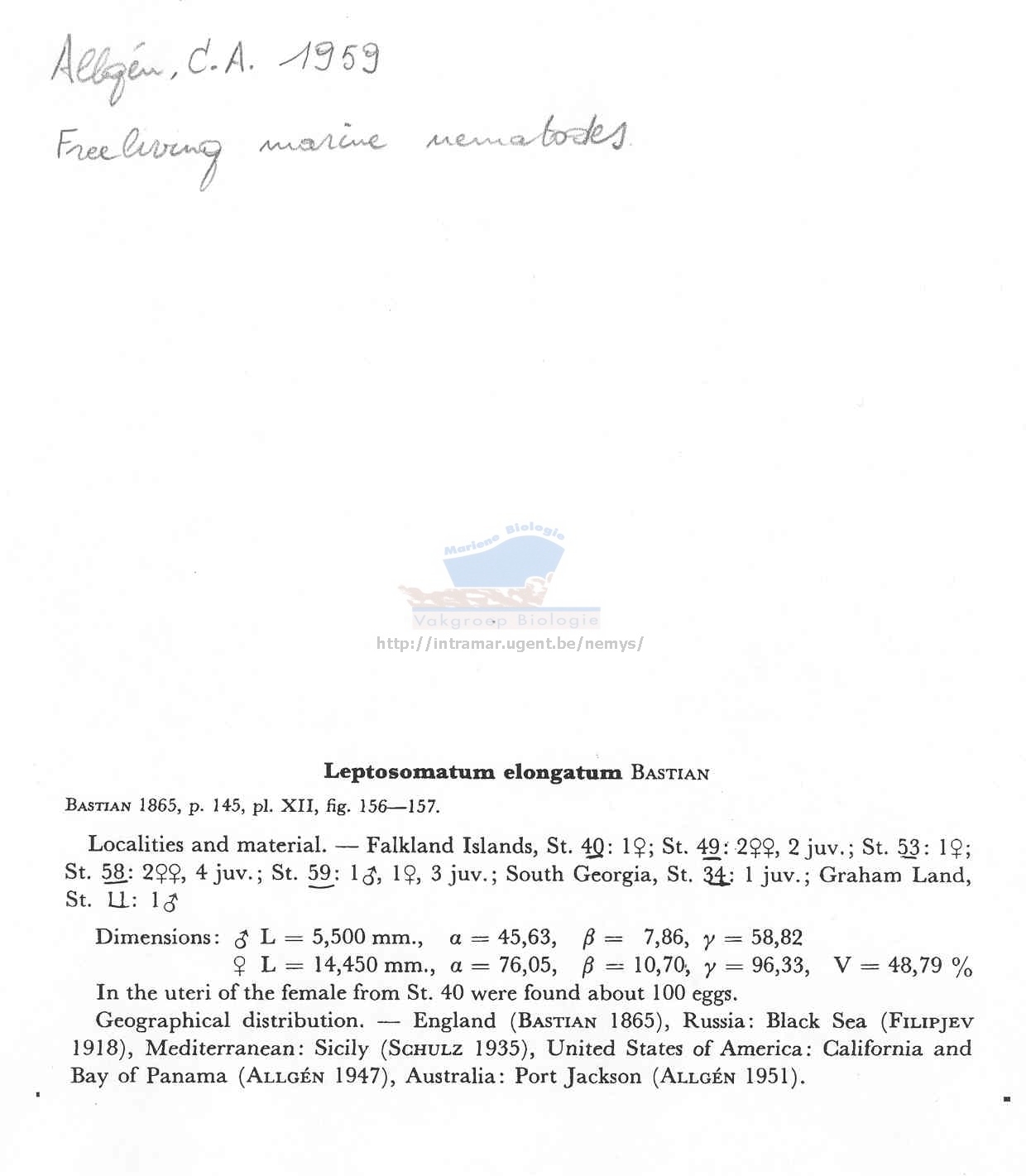 Nematode file-library of the Marine Biology Section (Ghent University, Belgium)
