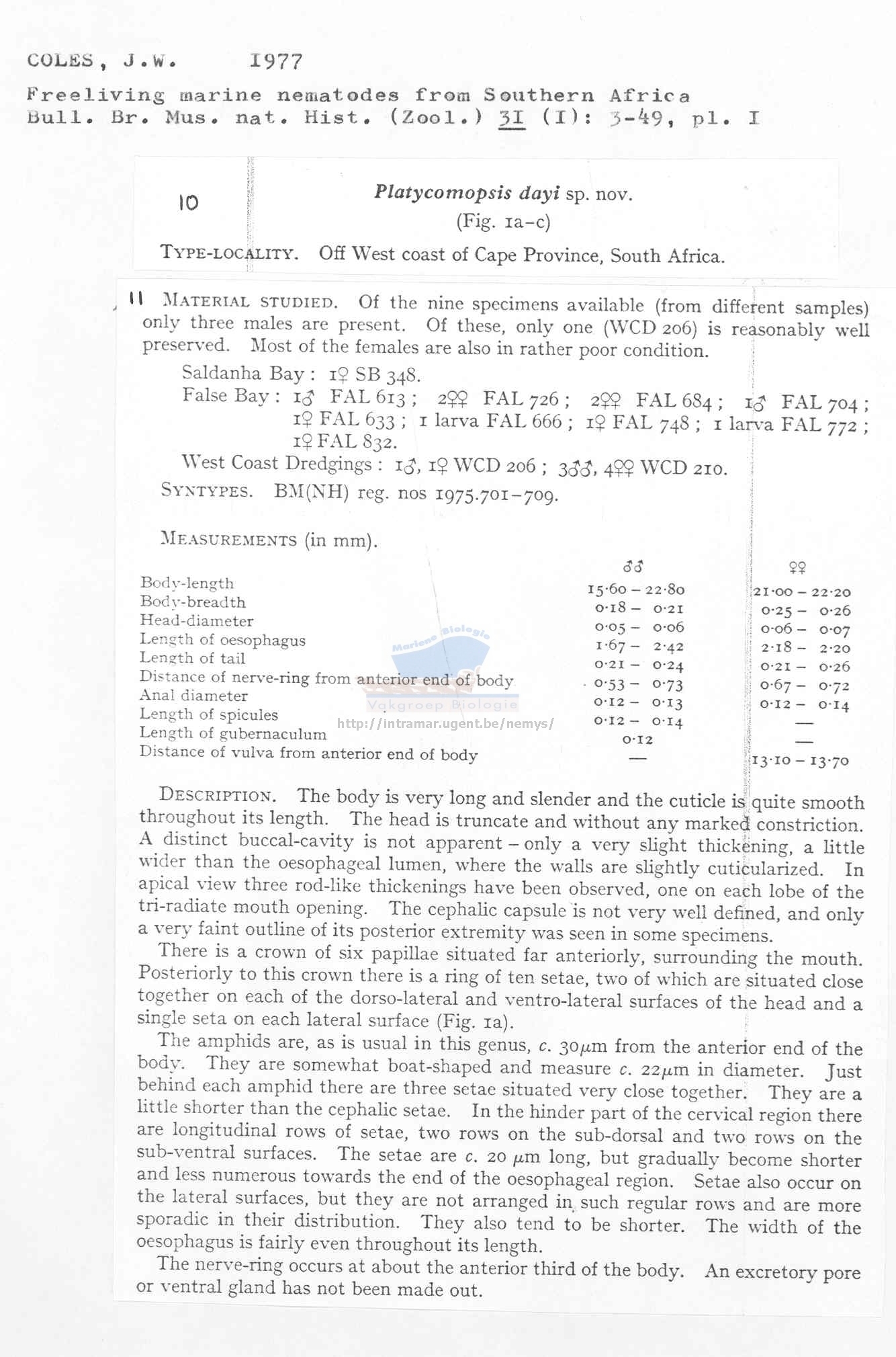 Nematode file-library of the Marine Biology Section (Ghent University, Belgium)
