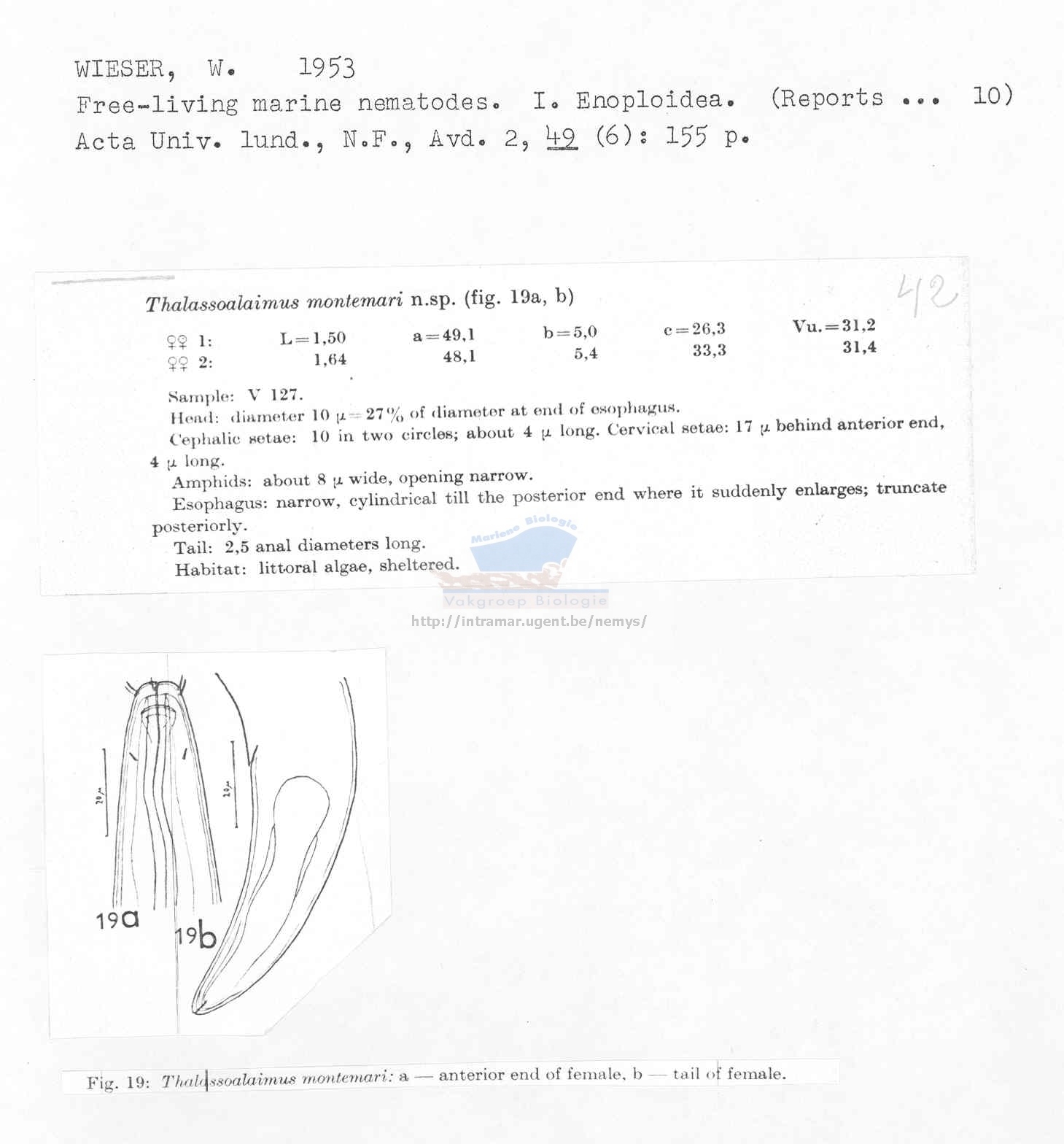 Nematode file-library of the Marine Biology Section (Ghent University, Belgium)