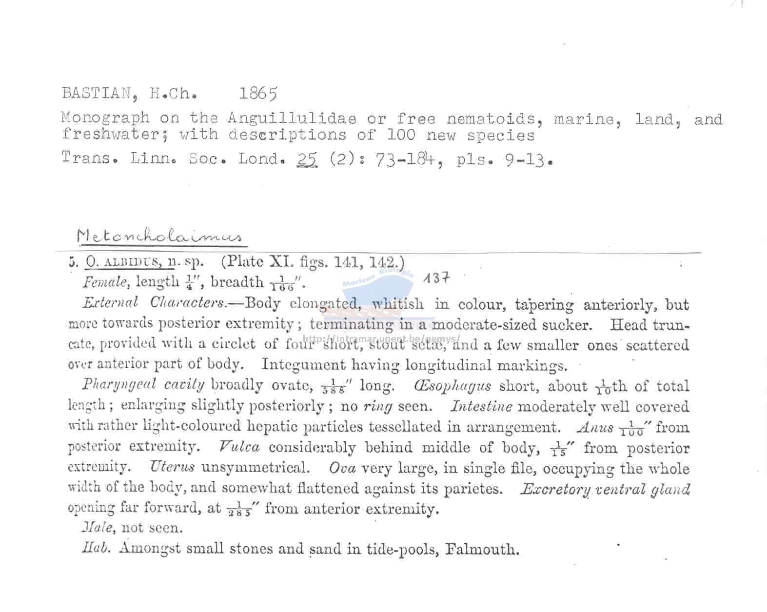 Metoncholaimus albidus