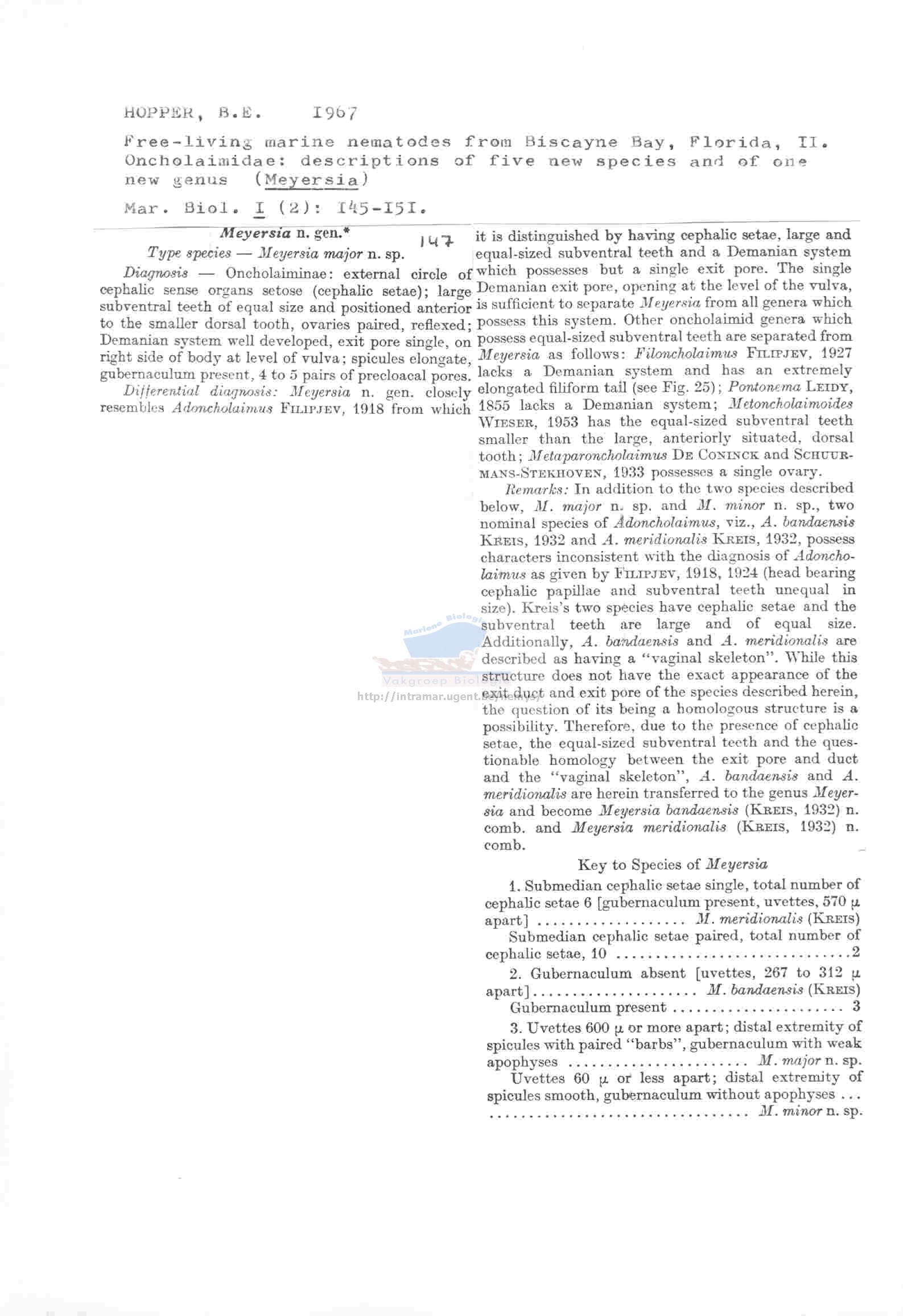 Nematode file-library of the Marine Biology Section (Ghent University, Belgium)
