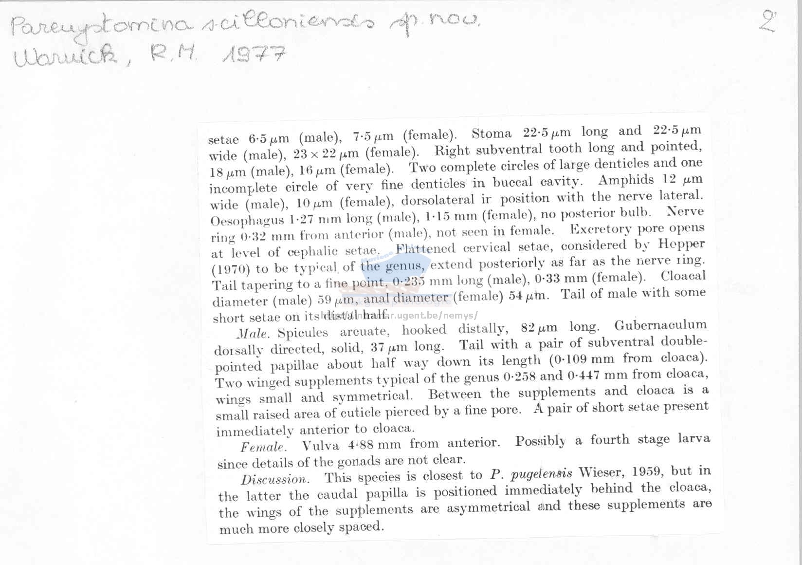 Nematode file-library of the Marine Biology Section (Ghent University, Belgium)