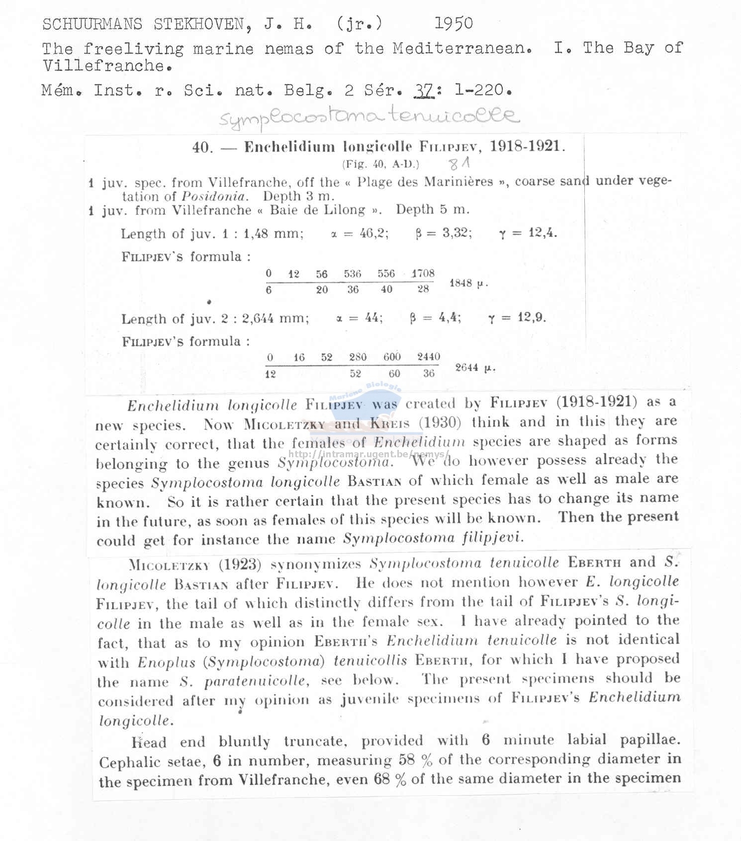 Nematode file-library of the Marine Biology Section (Ghent University, Belgium)