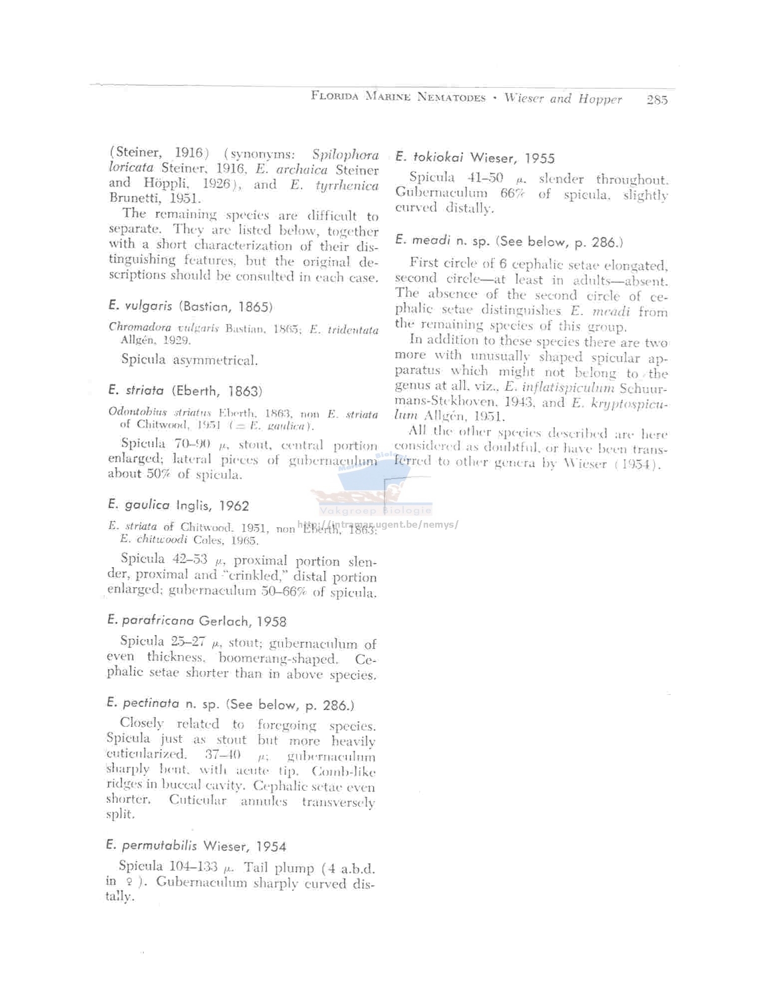 Nematode file-library of the Marine Biology Section (Ghent University, Belgium)