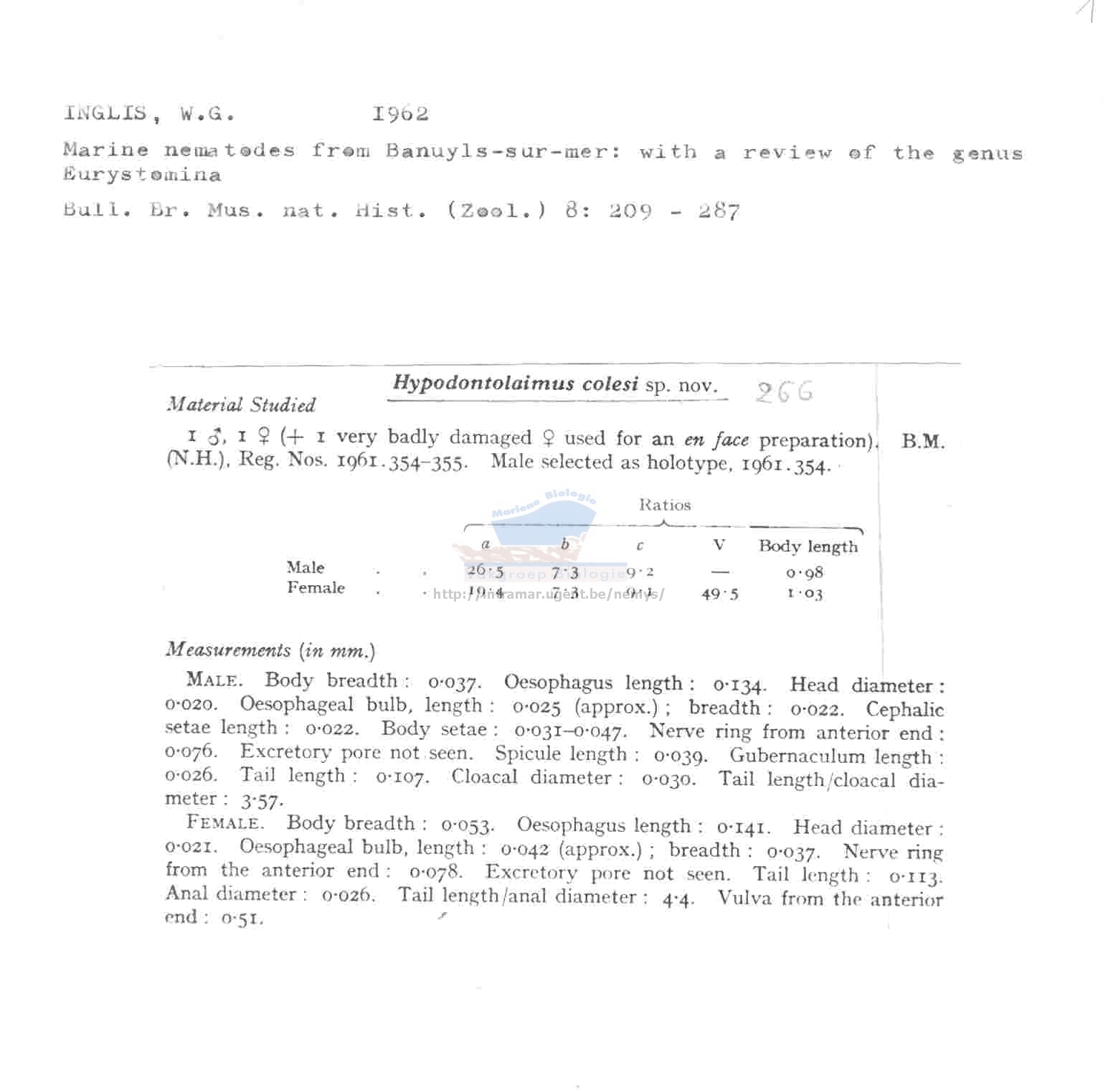 Hypodontolaimus colesi