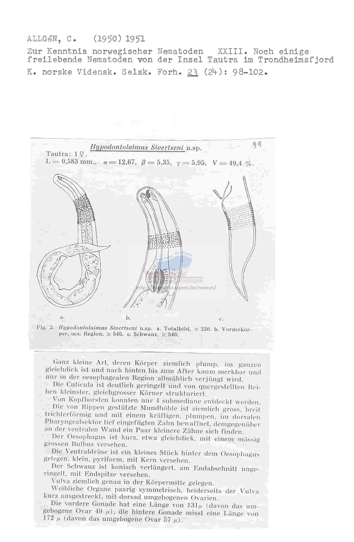 Hypodontolaimus sivertseni
