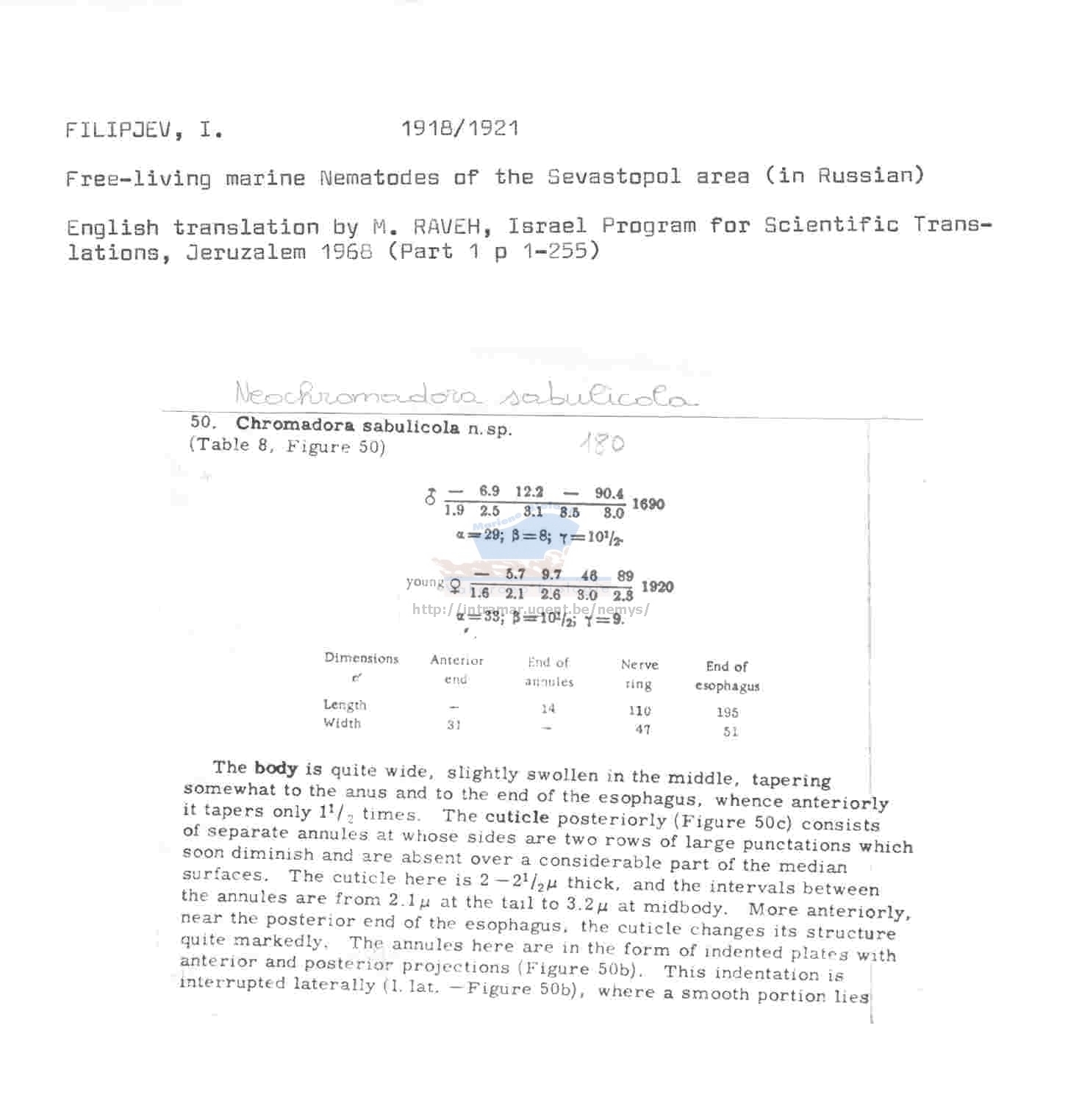 Nematode file-library of the Marine Biology Section (Ghent University, Belgium)