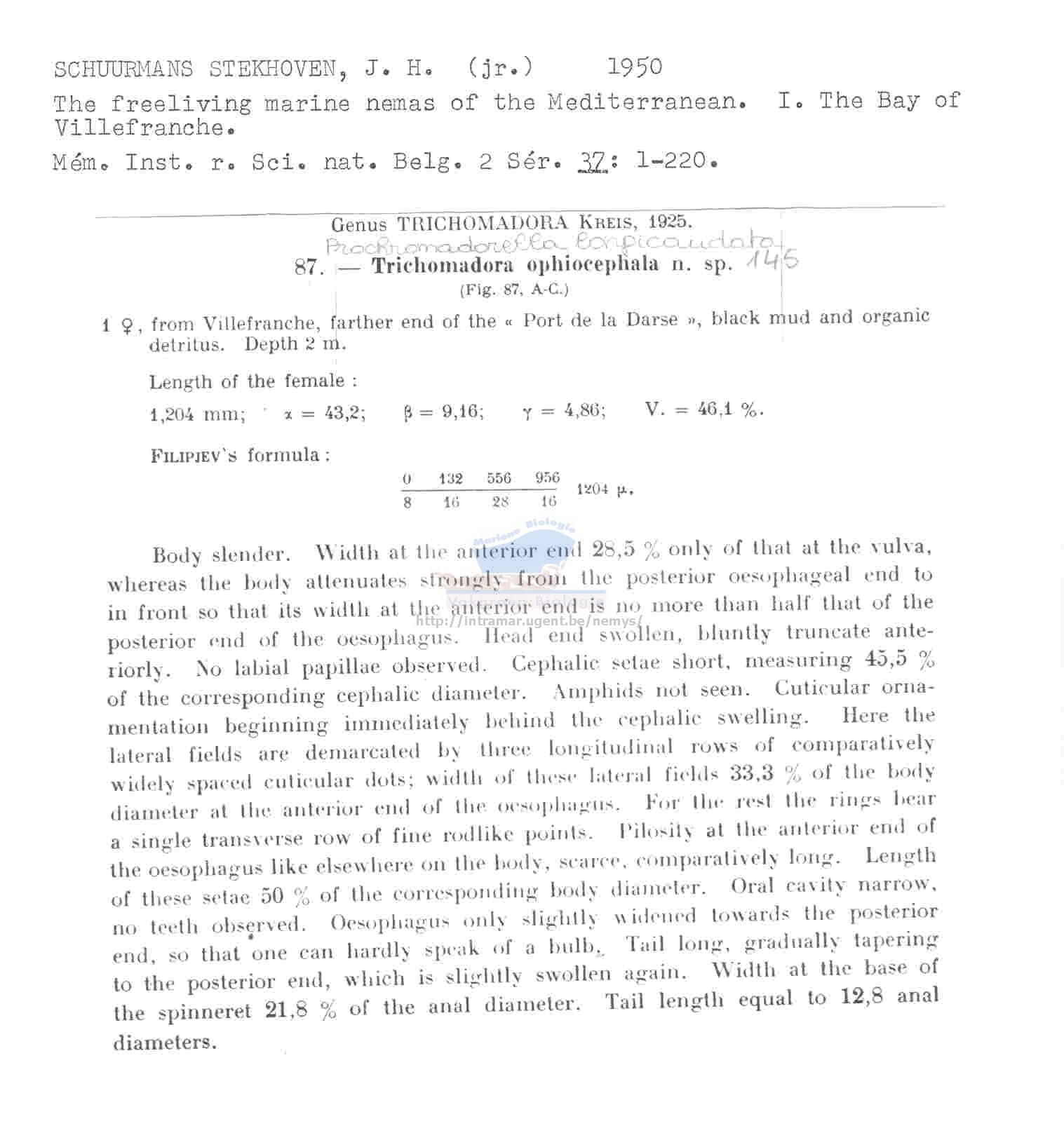 Nematode file-library of the Marine Biology Section (Ghent University, Belgium)