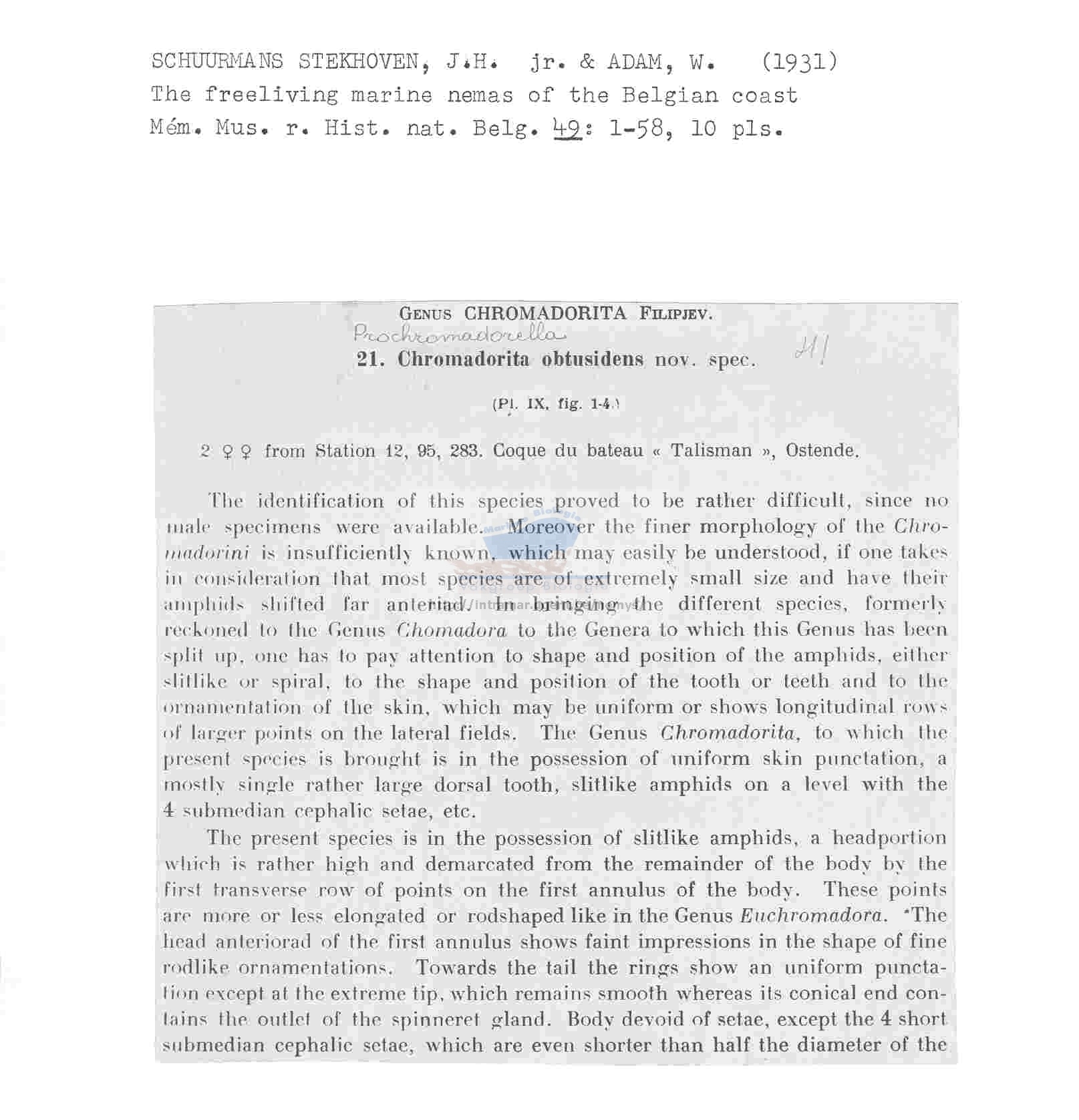 (Schuurmans Stekhoven & Adam, 1931) Wieser, 1951