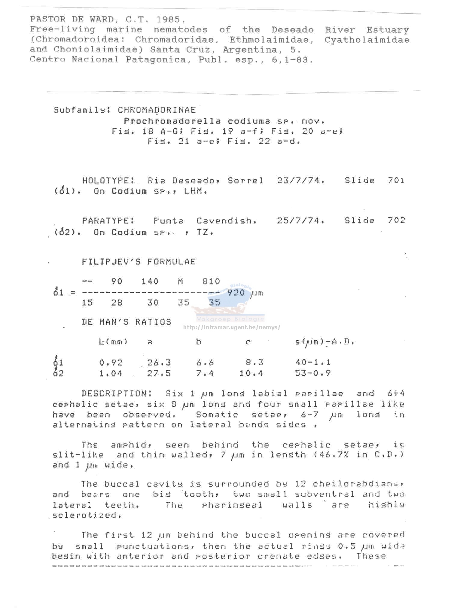 Nematode file-library of the Marine Biology Section (Ghent University, Belgium)