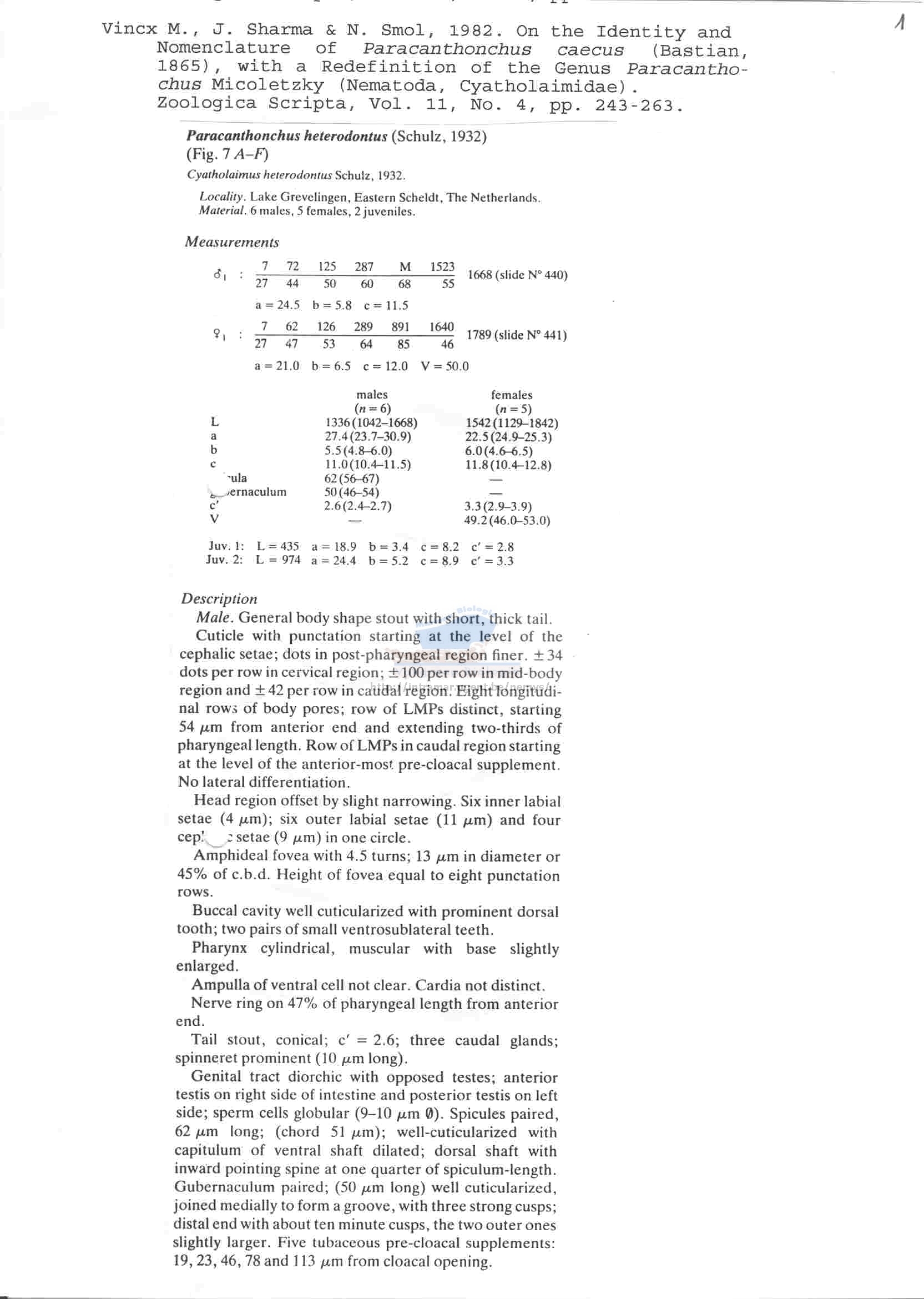 (Schulz, 1932) Vincx et al., 1982