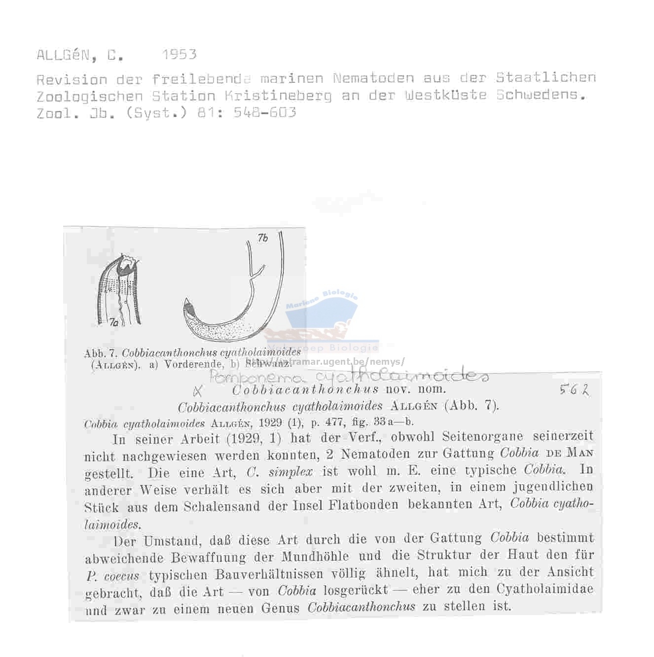 Nematode file-library of the Marine Biology Section (Ghent University, Belgium)