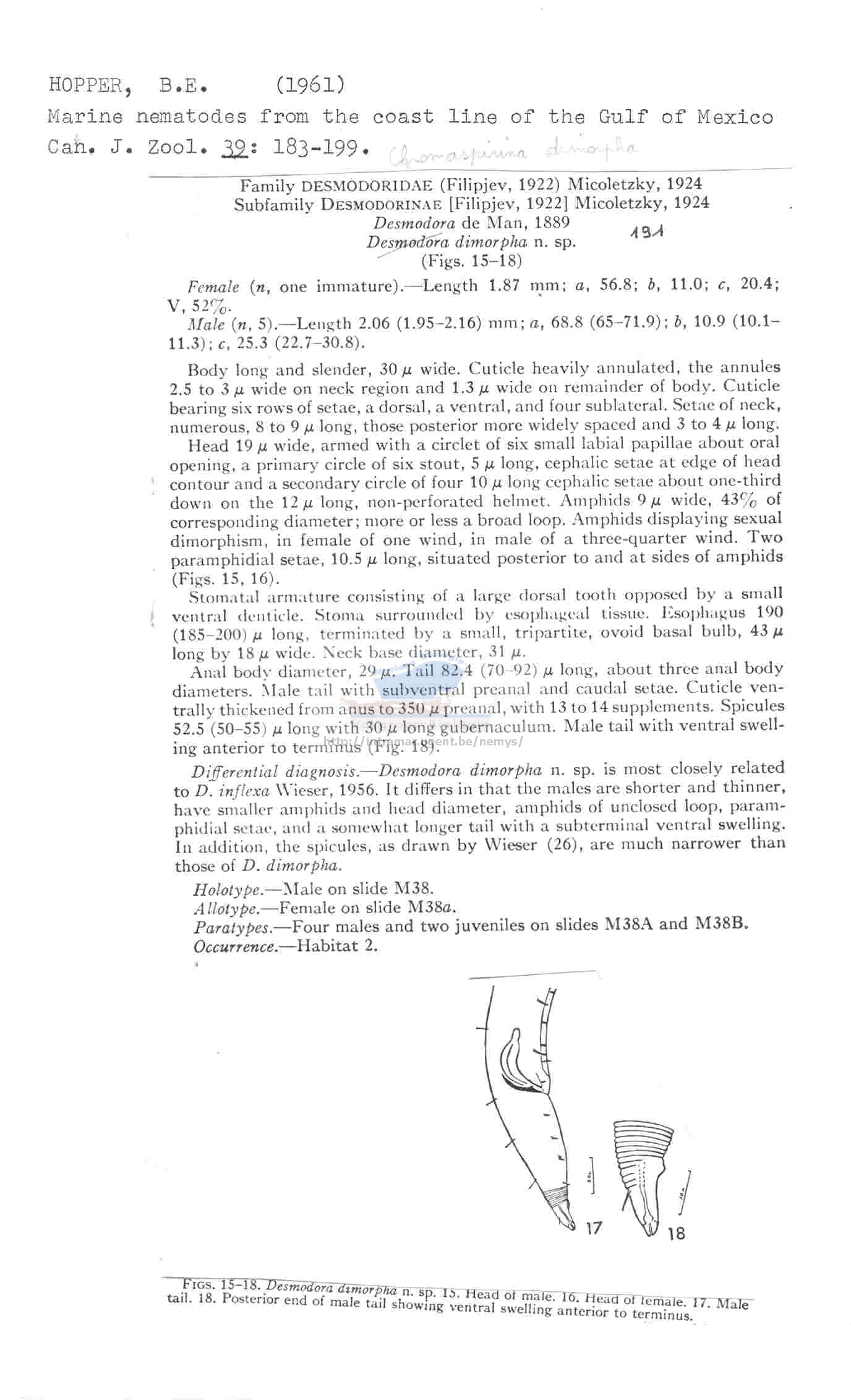 Nematode file-library of the Marine Biology Section (Ghent University, Belgium)
