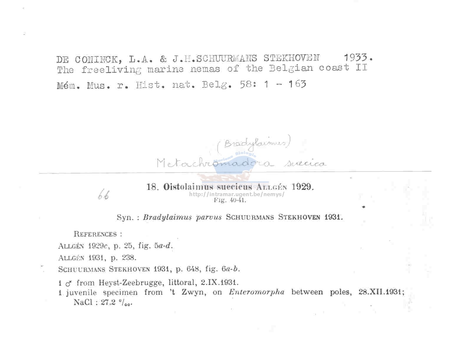 Nematode file-library of the Marine Biology Section (Ghent University, Belgium)