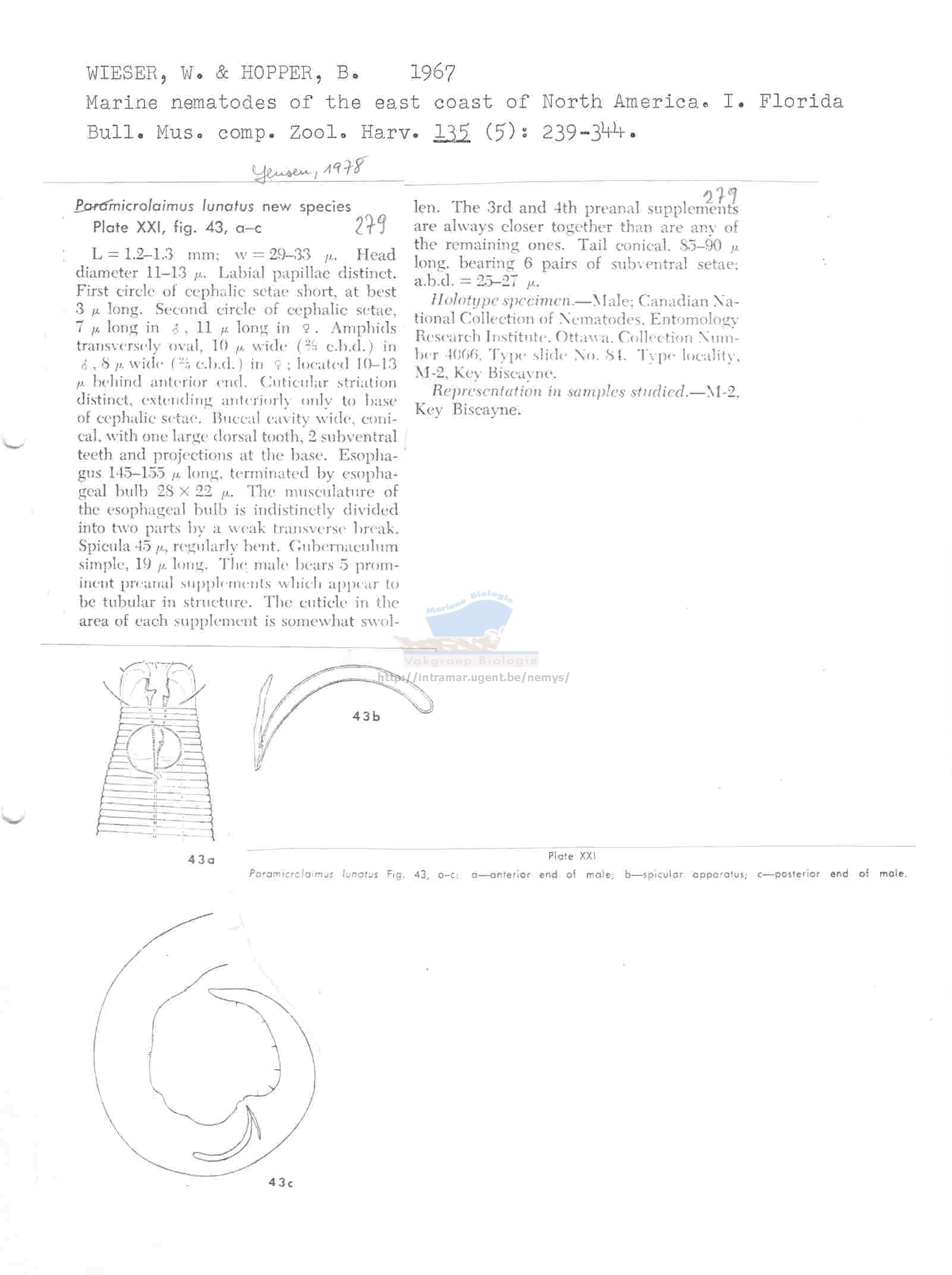 Nematode file-library of the Marine Biology Section (Ghent University, Belgium)