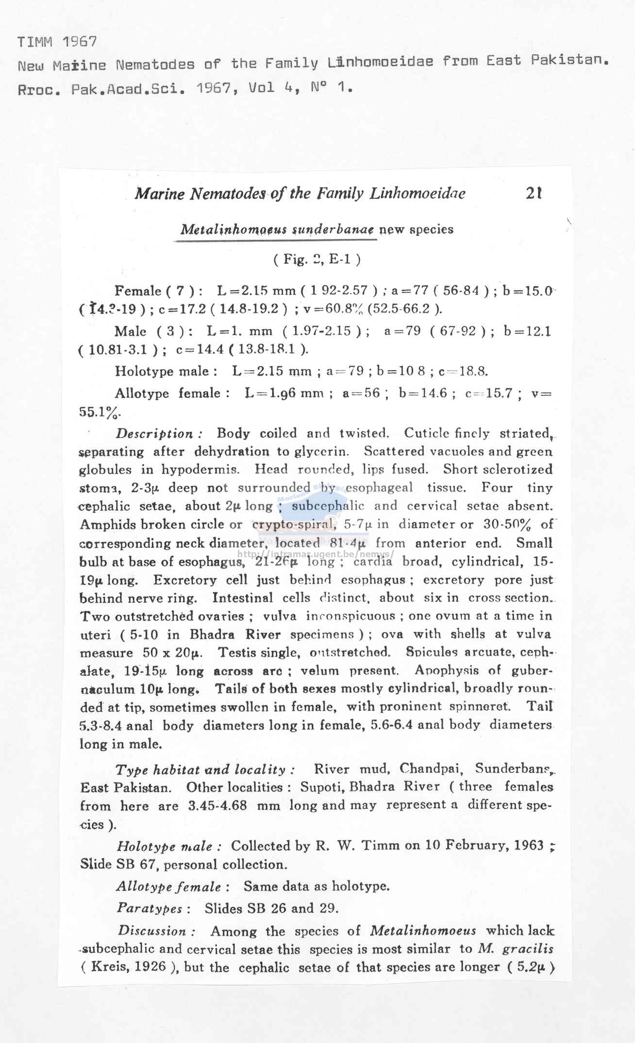 Metalinhomoeus sunderbanae
