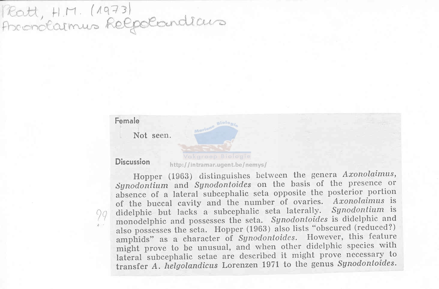Nematode file-library of the Marine Biology Section (Ghent University, Belgium)