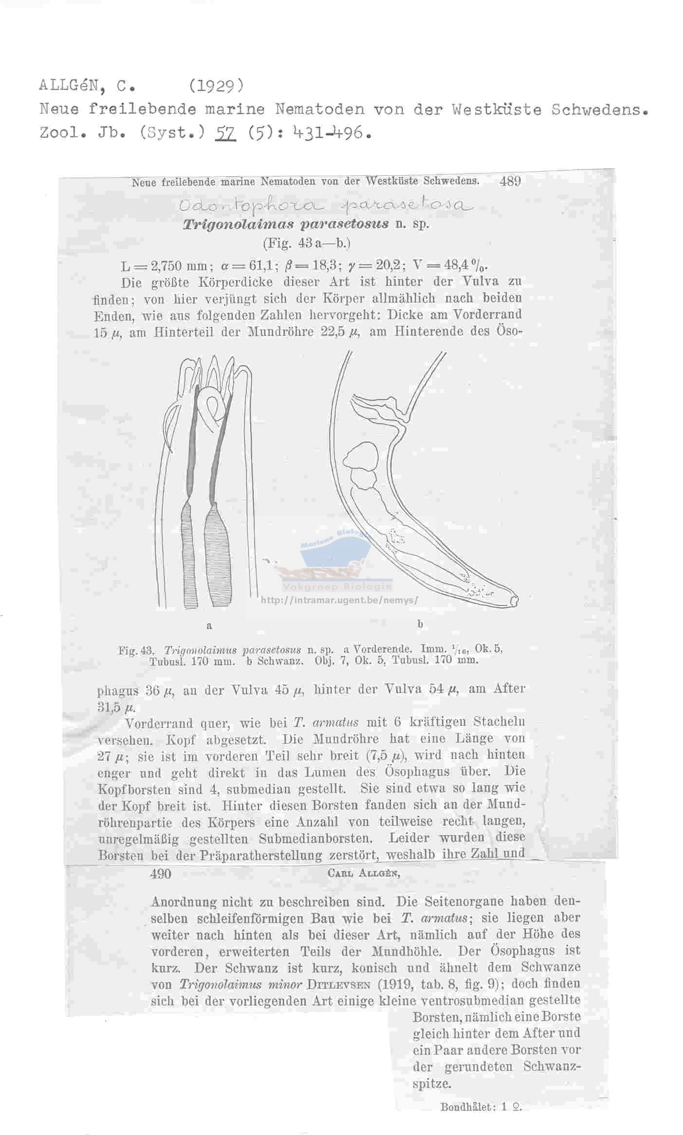 Nematode file-library of the Marine Biology Section (Ghent University, Belgium)