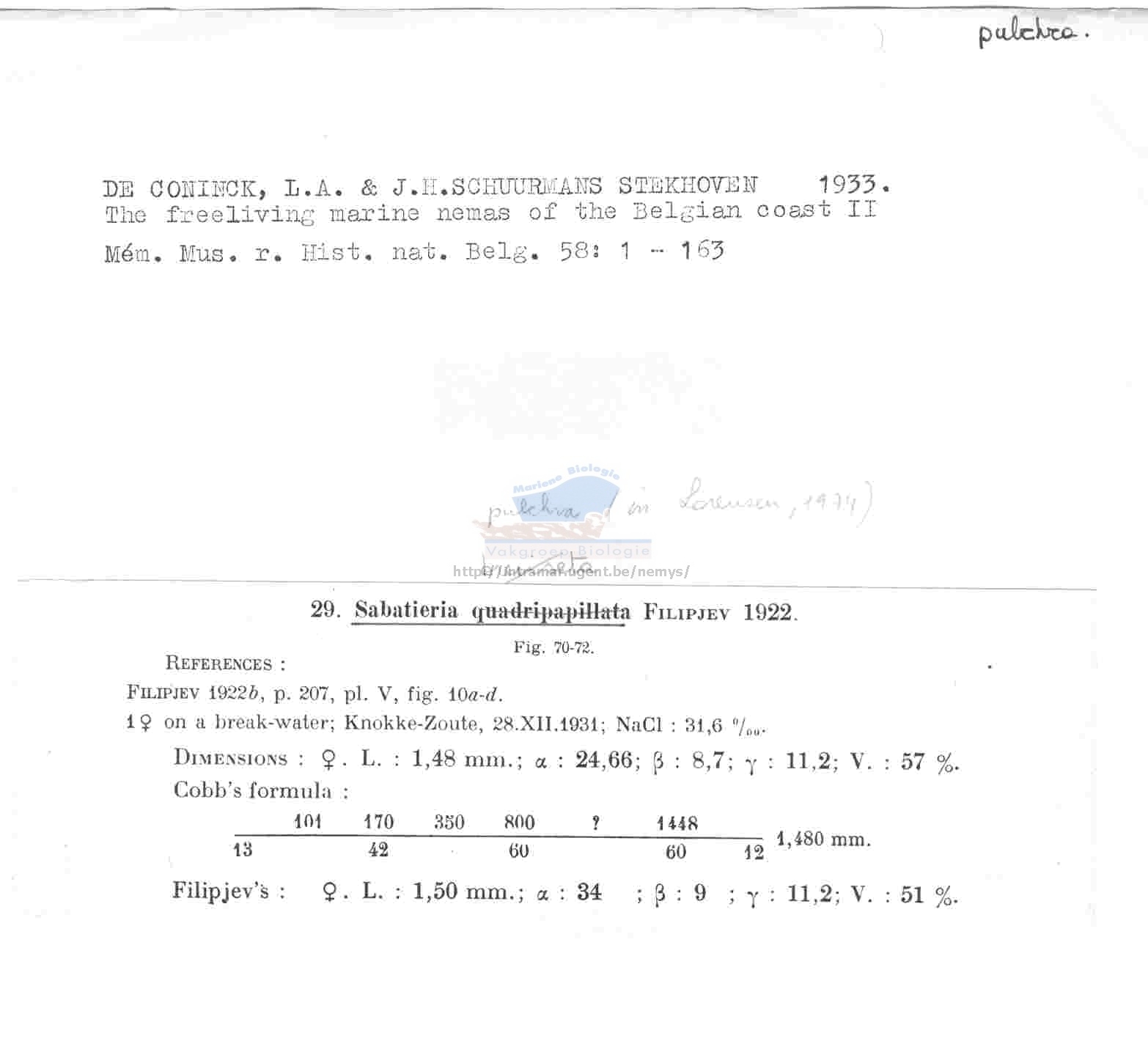 Nematode file-library of the Marine Biology Section (Ghent University, Belgium)