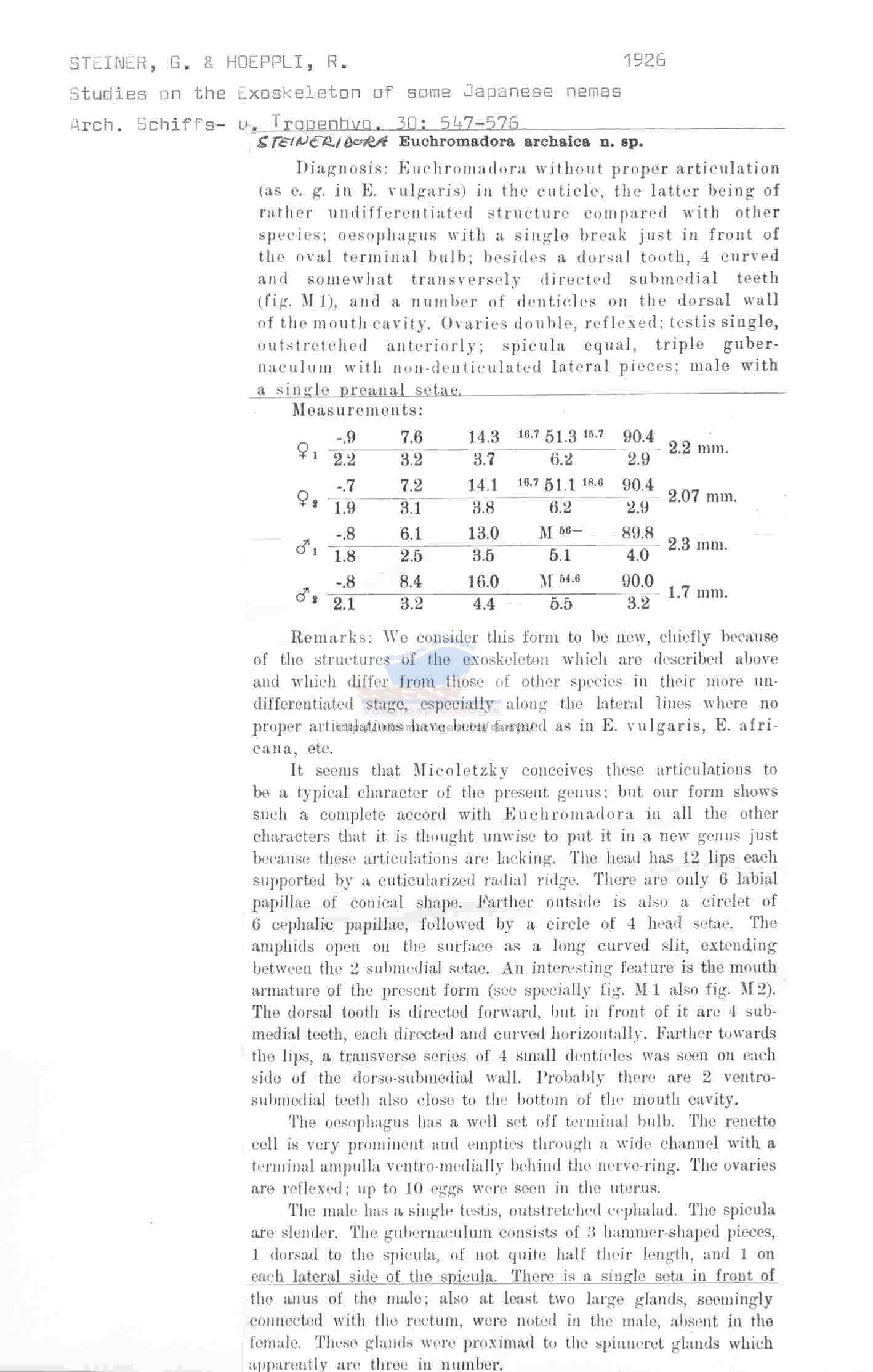 (Steiner & Hoeppli, 1926) Inglis, 1969